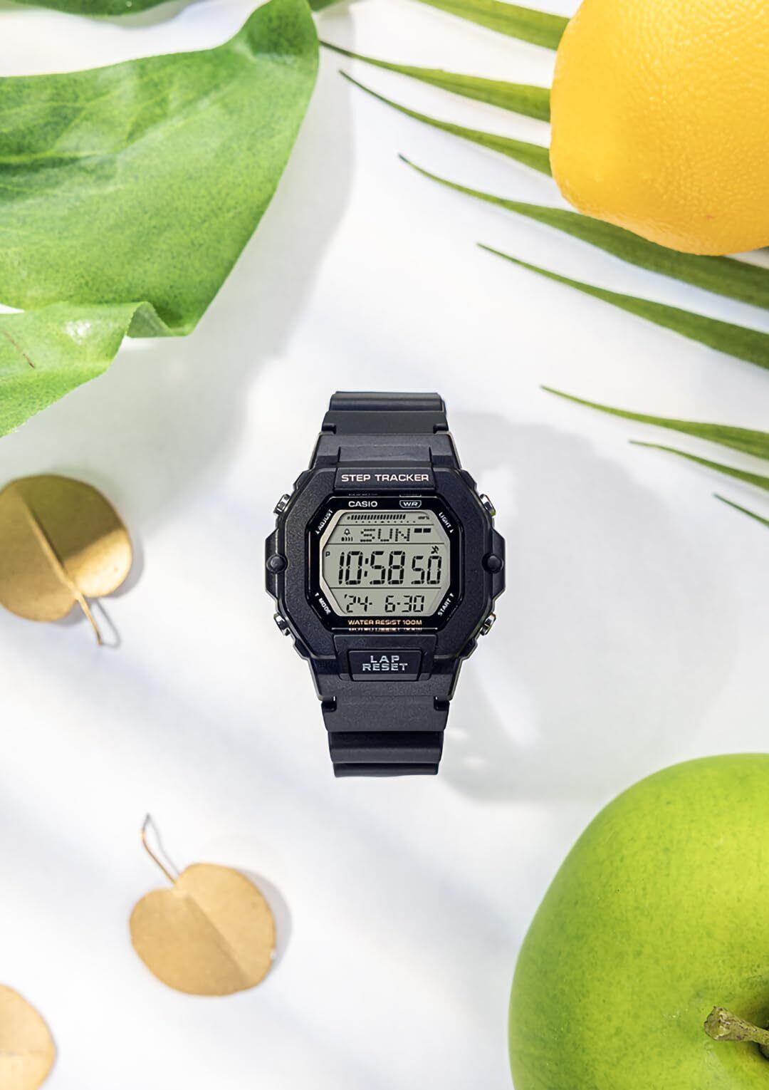 ウォーキングやランニング等の活動を始めると自動的に歩数計測を行うステップトラッカー機能を搭載したモデルです。3軸加速度センサーによる歩数カウント機能を備えており、着用時に動き始めると自動的に歩数計測を開始します。また、歩数のレベルをグラフで表示したり、過去7日分の歩数及び目標達成率を確認できるなど、普段の健康管理・運動量管理をサポートします。更に、ラップタイムは最大200本までメモリー可能。タイム計測中に計測時間と現在時刻を同時に表示することもできます。LEDライト付きで、夜間での視認性も確保。小型フェイスかつ走行中でもラップ操作しやすいフロントボタンなど、ランナーのニーズにマッチしたモデルです。カラーはマット仕上げなので、スポーツシーンはもちろん、タウンユースでも活用しやすいデザインです。