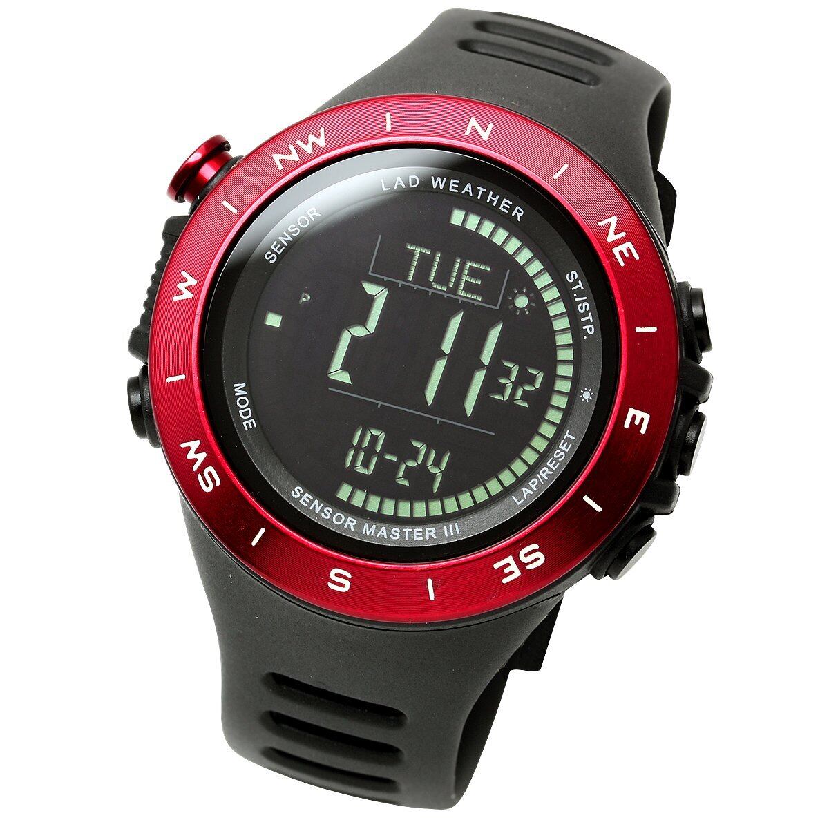[ラドウェザー]デジタル時計 温度計 歩数計 100m 防水時計 (レッド反転)