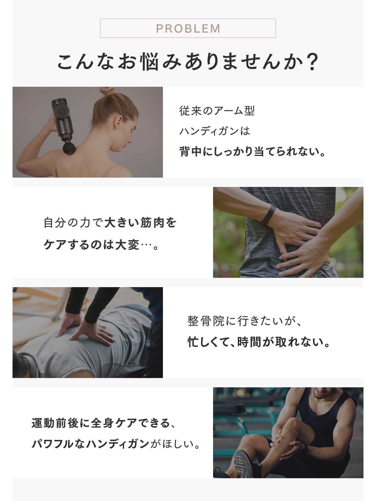 ブランド名: MYTREX(マイトレックス)/販売名: REBIVE EX PRO (リバイブ イーエックスプロ)/品番: MT-RBEX23B/本体寸法: 約239mm×98mm×81mm(本体折りたたみ時)約330mm×148mm×81mm(アーム角度90°・ハンドル最長時)/重量: 約690g(本体のみ、アタッチメントは含まず)/素材: 本体:PC-GF20、ABS樹脂、アルミニウム合金、アクリル、ステンレス、シリコンアタッチメント:ABS樹脂、シリコン、(温熱アタッチメントのみ次を含む:アルミニウム)/振動機能: 約1200回~3200回(分)/電気持続時間 最長 約8.5時間(低速・温熱機能オフ時),最短 約2時間(高速・温熱機能オン時)/定格時間 10分/使用環境:温度 5℃~40℃、相対湿度 ≦85RH%/パッケージ内容: 本体×1・充電用USBコード×1・アタッチメント×6種類・取扱説明書(書)×1・備品収納袋×1・アタッチメント用ストッパーゴム(予備)×2