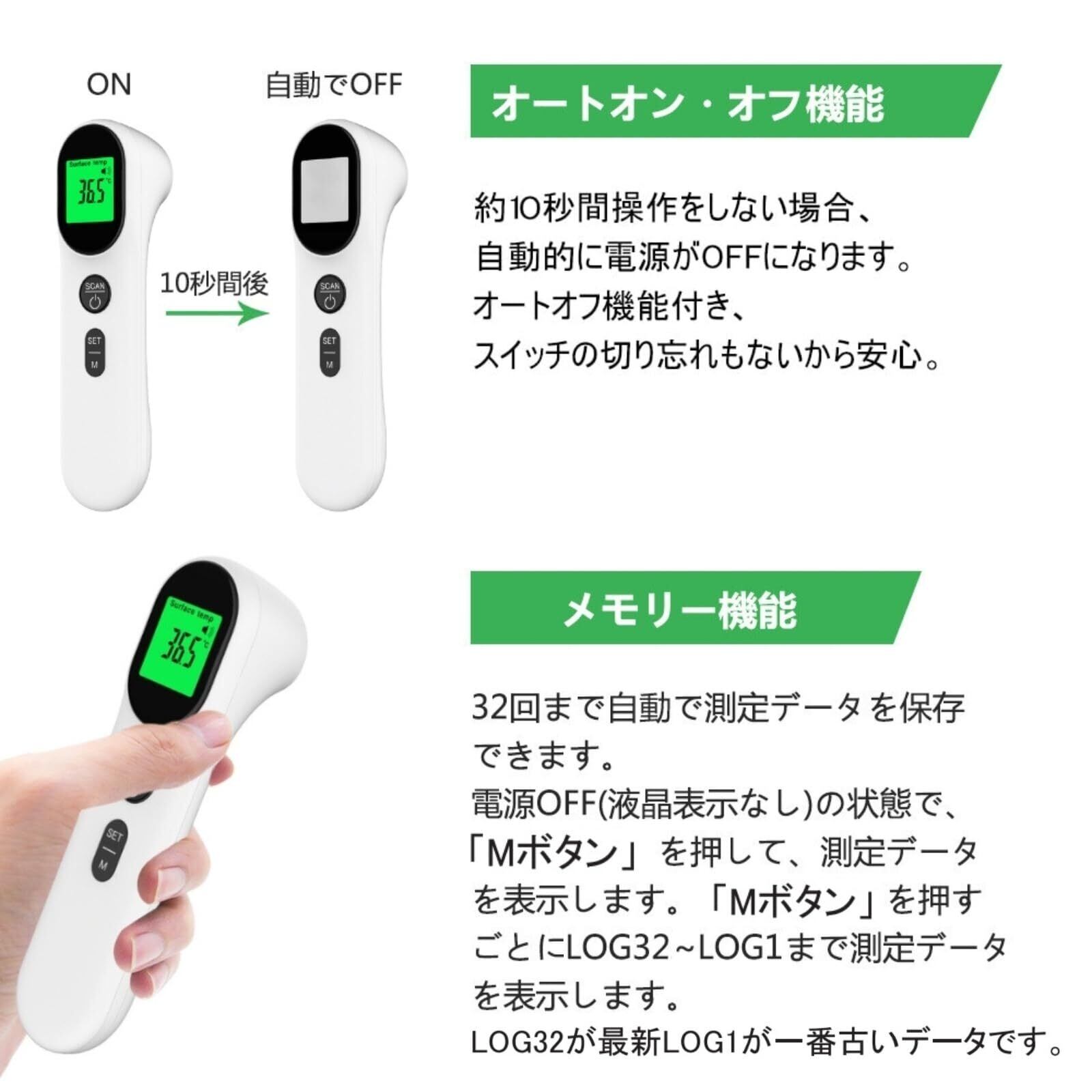 BESTEK 非接触 温度計 赤外線:早い 1秒測定 32回記録 自動OFF 非接触式 電子温度計