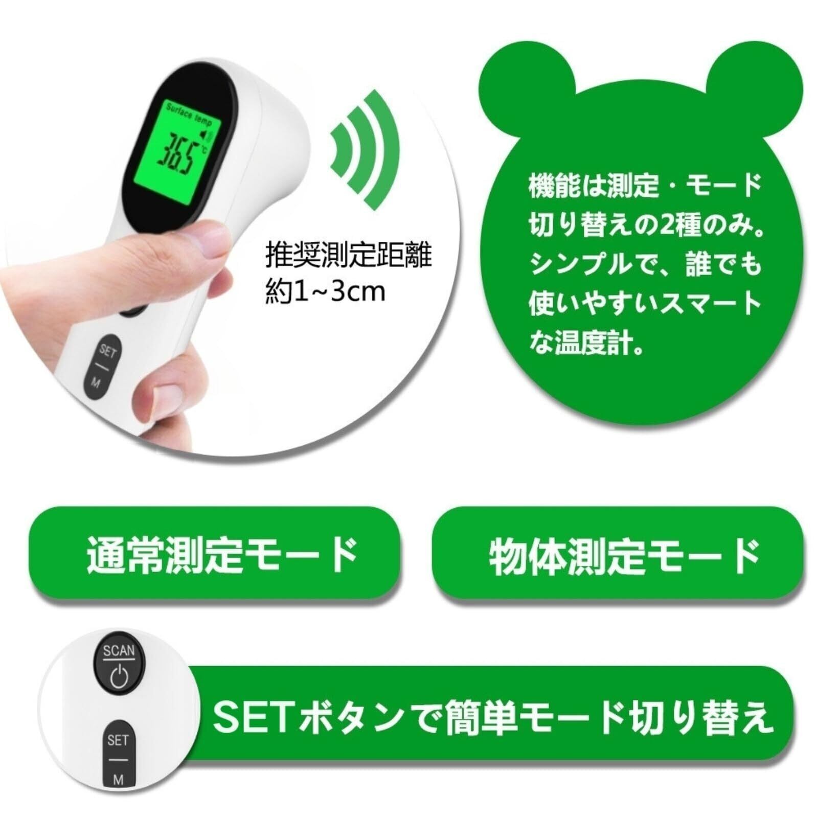 非接触式温度計 - 本製品は非接触型温度計です。赤外線センサーにより非接触、約1秒で温度や物体表面温度を測定できます。