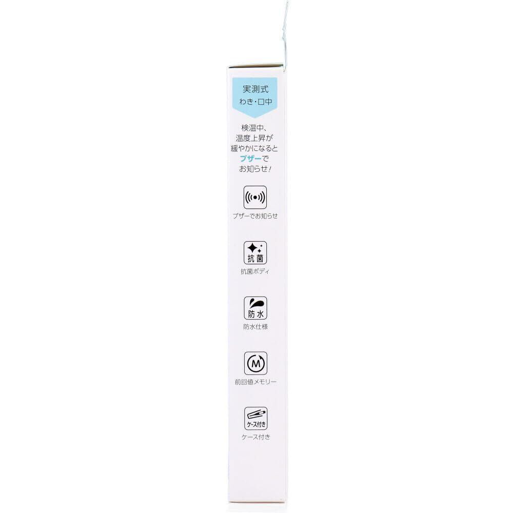 ●検温状態をブザーでお知らせ。 ●抗菌、防水仕様で水で洗えて清潔。 ●前回値メモリー付き。 ●オートパワーオフ(約30分後)。 ●電池交換も簡単(LR41)。 ●保管に便利な収納ケース付き。