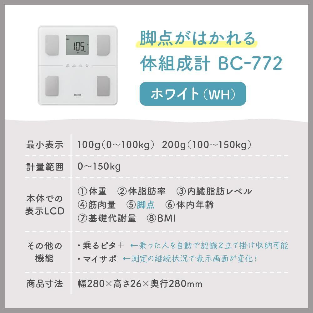 タニタ 体重計 体組成計【業界初 脚点判定(体重を支える足の筋肉量を点数化)】体脂肪率/筋肉量/内臓脂肪レベル/体重/体内年齢/基礎代謝量/BMI/乗るピタ/マイサポ 立て掛け収納OK スマホ必要なし ヘルスメーター BC-772