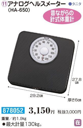 タニタ(Tanita) 体重計 アナログ 大画面 ブラック HA-650 BK 見やすい大きな目盛版