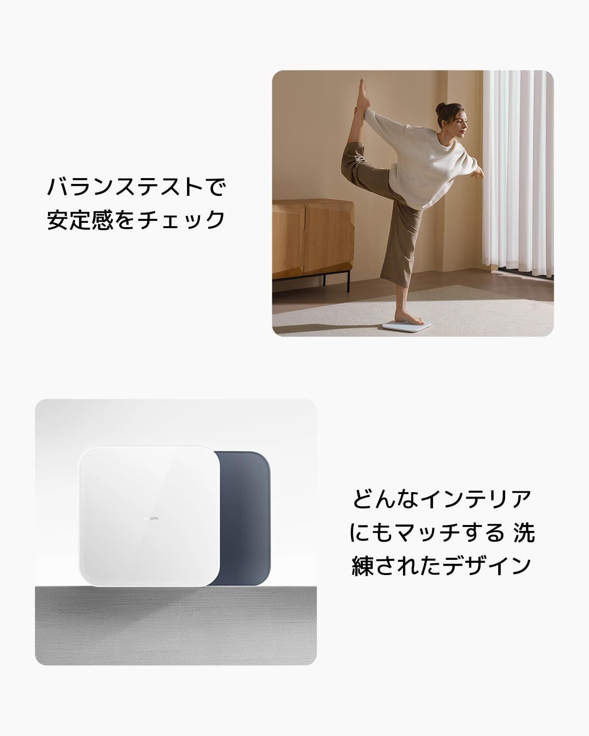 【バランステストで安定感をチェック】バランステスト機能を搭載。スケールの上に片足で立ってバランスをとると、Xiaomi Homeアプリに筋肉の協調性、安定性、反応時間のデータが表示されます。