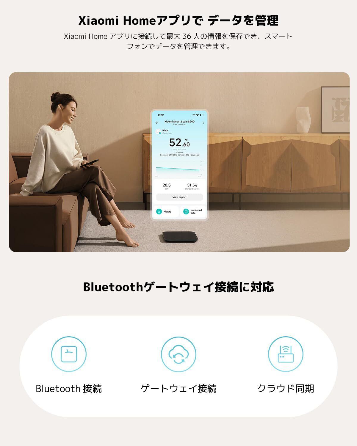 シャオミ(Xiaomi) スマート 体重計 S200 Bluetooth スマホ連動 ヘルスメーター 体重/BMI/体重管理 長時間稼働 軽量