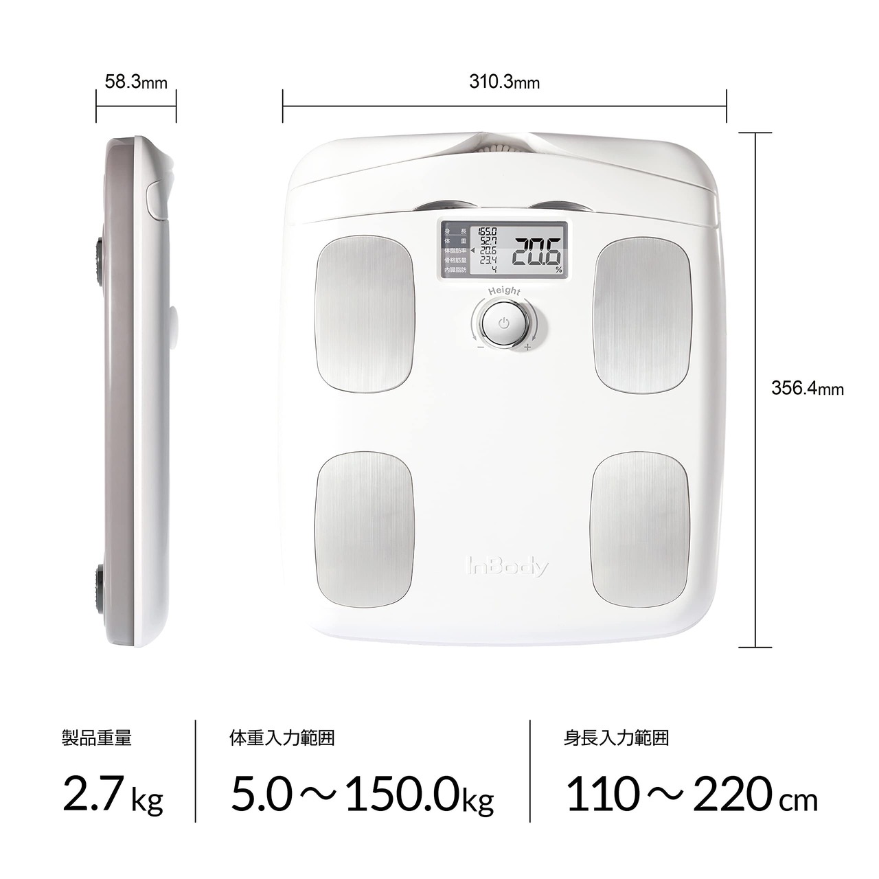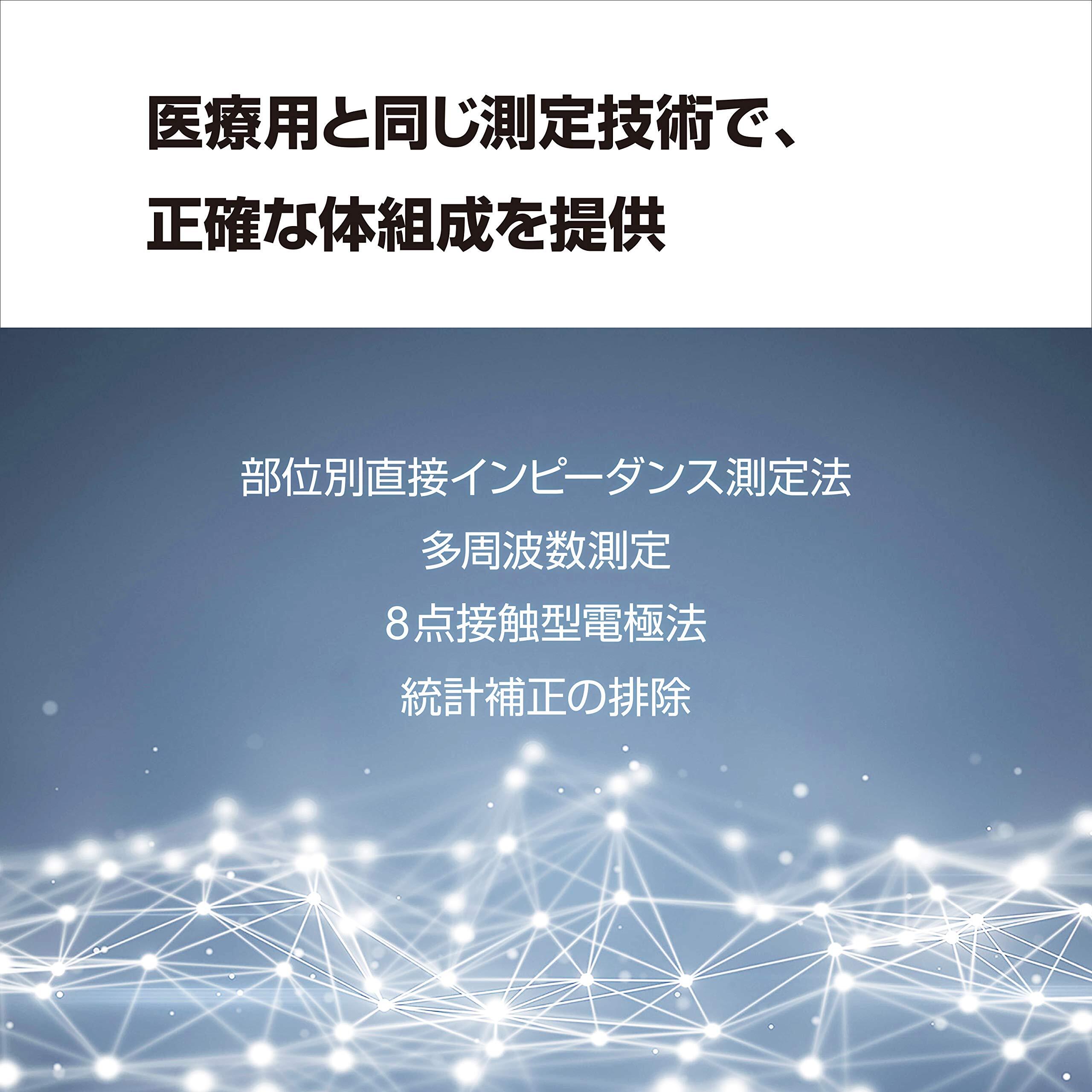 【製品説明】 業務用InBodyと同じ技術で測定し、あなたの体組成を正しく評価します。生活習慣の「良い」「悪い」は筋肉・体脂肪に表れるため、定期的に測定しご自身の体組成を把握することが重要です。