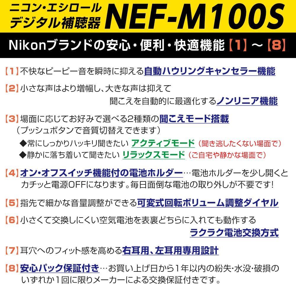 二コンデジタル耳あな型補聴器 ニコン・エシロール NEF-M100S 日本製 右用 左用 両耳用 軽度から中度難聴用 ラクラク電池交換方式 (右耳用) 携帯用ケース付 新安心パック付