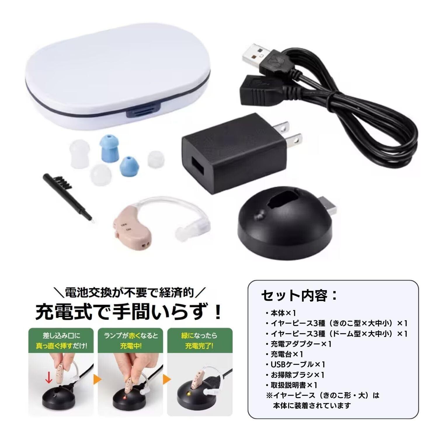 ・最大約30倍に音を大きくする充電式集音器。話し声やテレビの音を大きくしてくれます。本商品を装着し、TVの音量実験をしたところ、音量を最大22も小さくしても聞こえる結果が出ました。