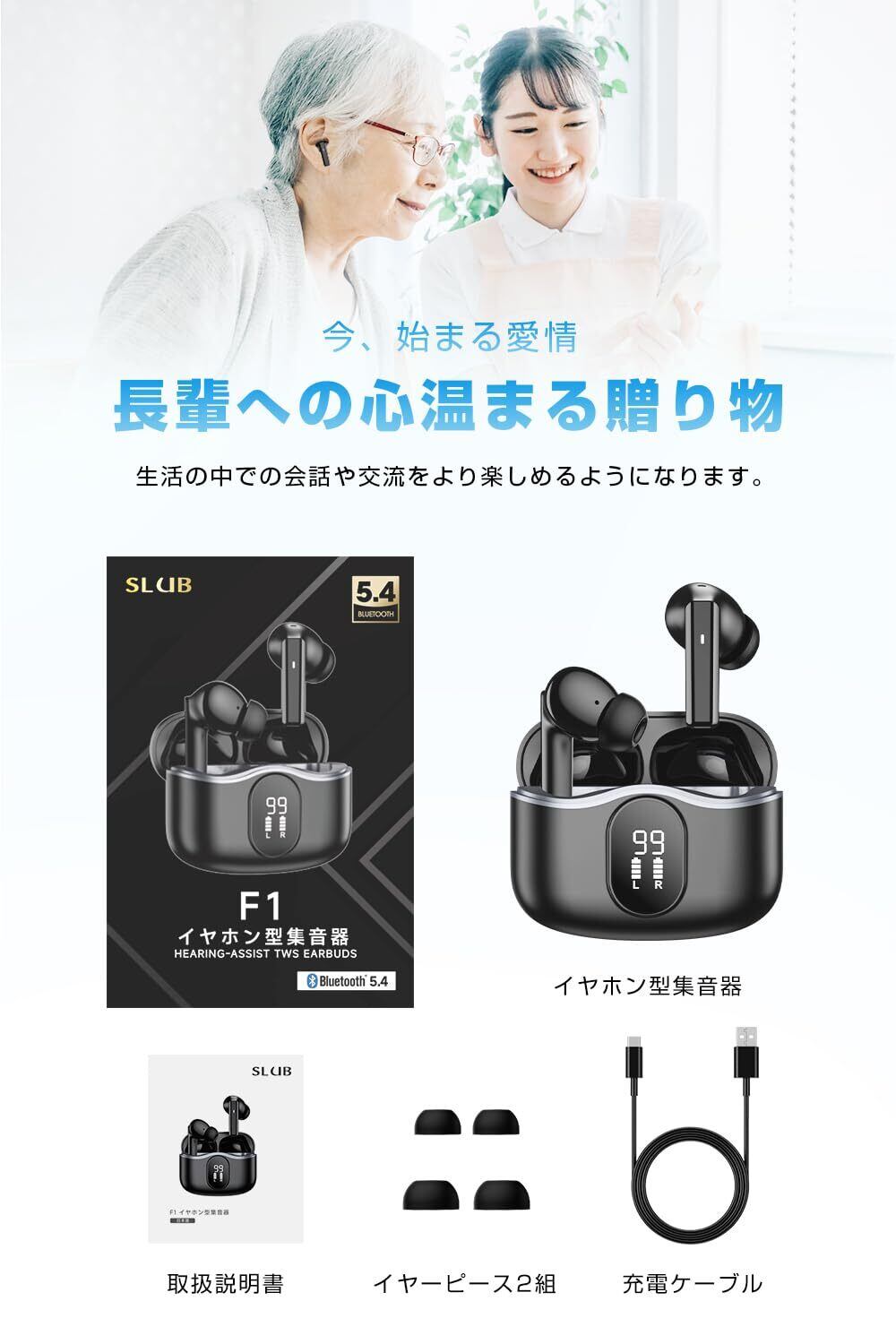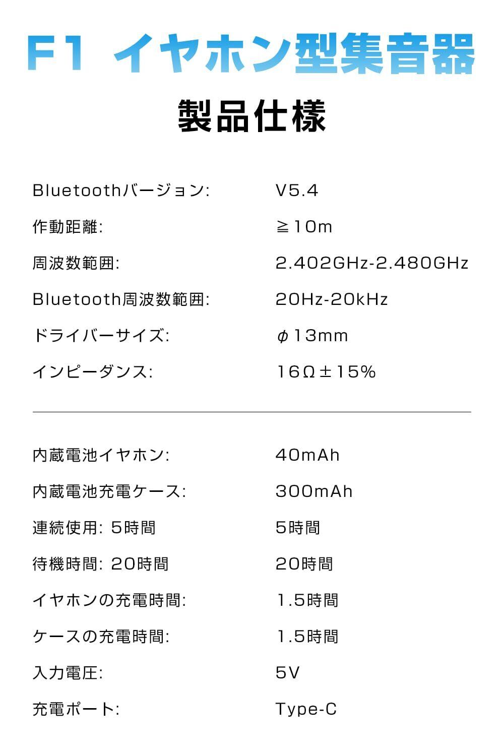 【1台2役高性能集音器と最先端Bluetooth技術の融合】当社の革新的なイヤホンは、集音器とBluetooth機能を1台に完璧に統合しており、多様なオーディオニーズに対応します。集音器としては、最新のデジタル信号処理技術を採用しています。この高度なチップは、あなたが聞きたい音を一つ一つ正確に認識し、クリアで大音量な音を出力します。人の声を360度全方位から捉え、ノイズを徹底的に除去しながら、相手の言葉を100%忠実に認識し、極めて自然な聴感を実現しました。また、この製品はBluetooth5.4を搭載しており、接続の安定性と高速性が大幅に向上しています。あなたのスマートフォンやタブレットのBluetoothをオンにし、「F1」という名前で検索してクリックするだけで、5秒以内に接続が完了します。接続成功後、音楽再生、通話、ビデオ視聴など、あらゆるオーディオコンテンツに対応しています。通話時には、応答や拒否の操作も簡単に行え、便利な使い勝手を提供します。