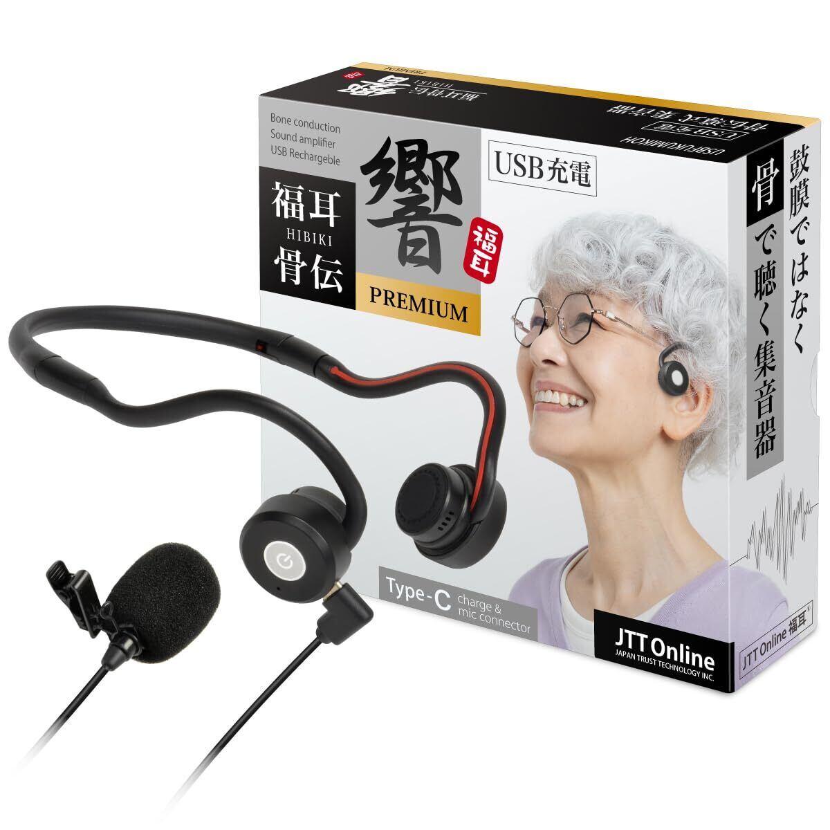 JTT Online 集音器 骨伝導 ヘッドホン USB充電式 福耳骨伝 響 PREMIUM Type-C デジタル ノイズ低減 高感度 マイク こつでんどう しゅうおんき USBFUKUMIKOH ブラック