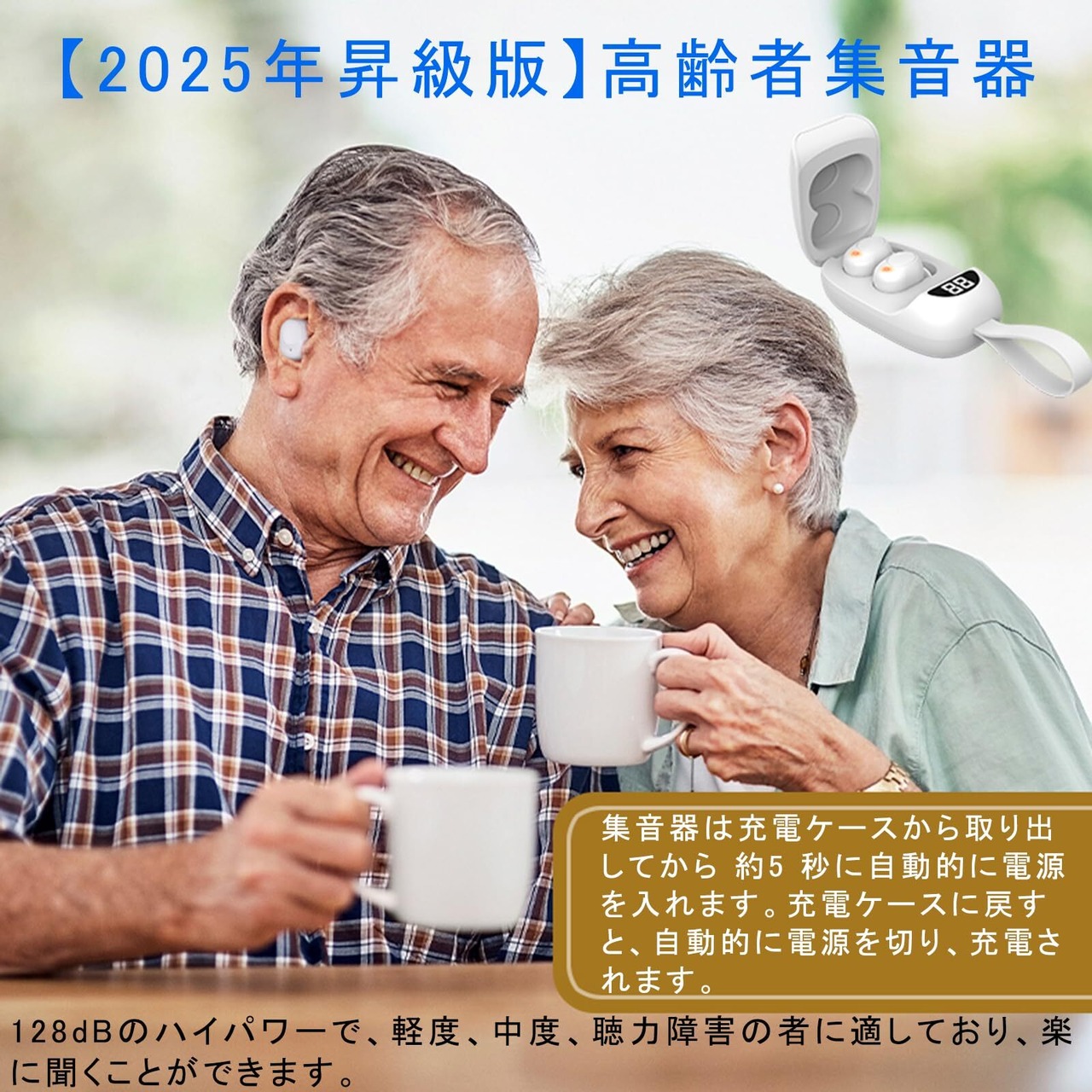 【2025年昇級版・高齢者集音器】AMIZDYTO集音器まるでイヤホンの様な形状での集音器です。は大きめなボタン設計されて、操作はとても簡単です、若い方からお年寄りまでだれでも手軽に使えます。正常な聴力を持つ方が装着するとブーンという音が聞こえます。これは異常ではありません。128dBのハイパワーで、軽度から中程度の聴力障害の方を対象に設計されています。