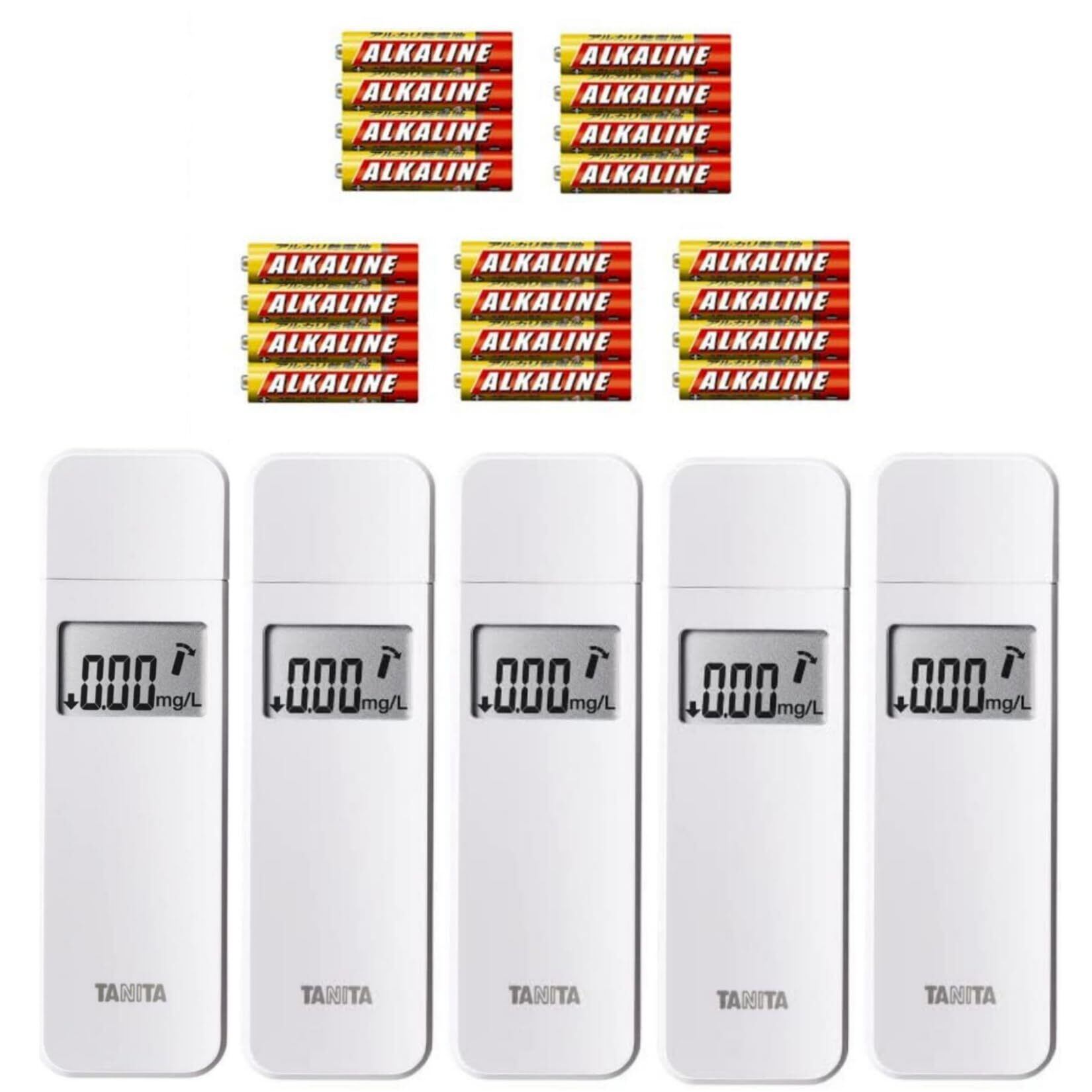 タニタ アルコールチェッカー ホワイト (5個まとめ売り&単4形電池(4本入り)×5パック付き) EA-100 WH アルコール検知器 セルフチェック