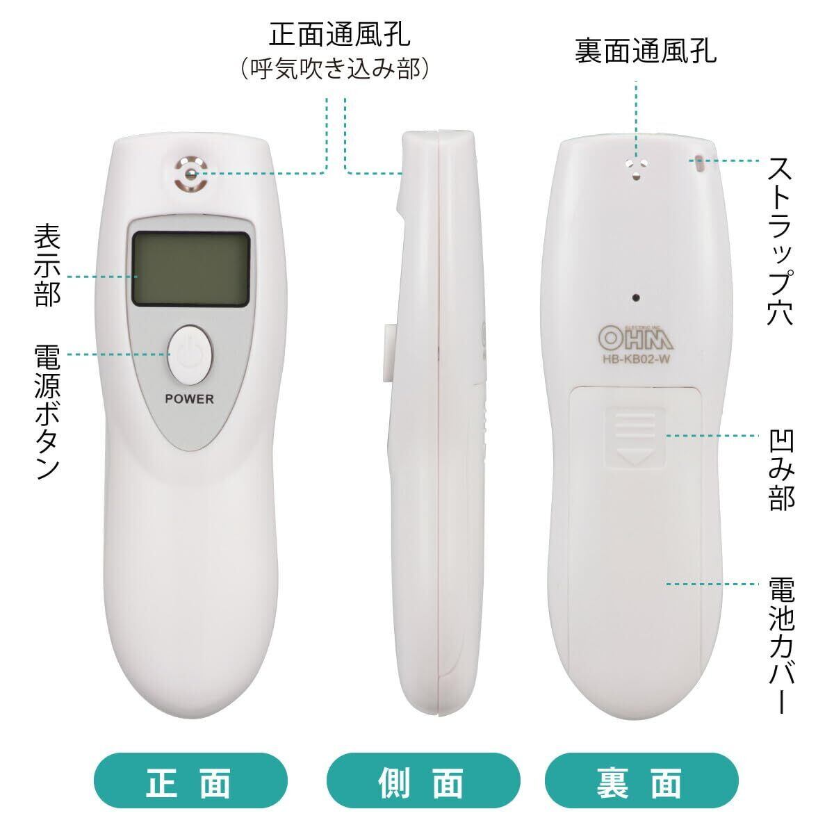 オーム(OHM) 口臭チェッカー 口臭測定 口臭計測器 ブレスチェッカー 5段階表示 お口の臭い エチケット 電池式 ポータブル HB-KB02-W 08-3924 オーム電機