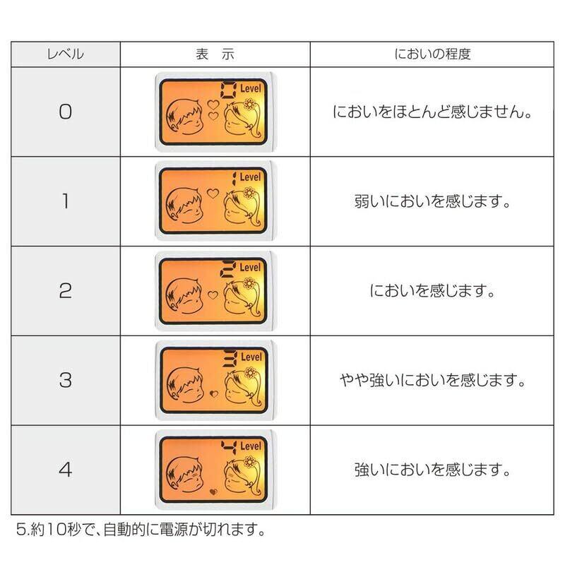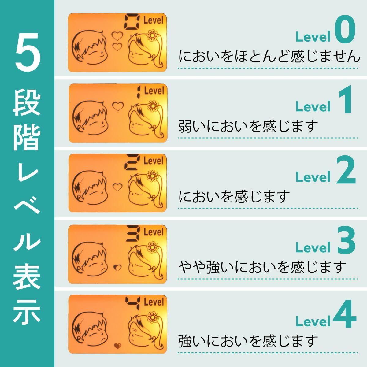 ■ 呼気中口臭測定範囲:レベル判定(5段階)数字とイラストで表示