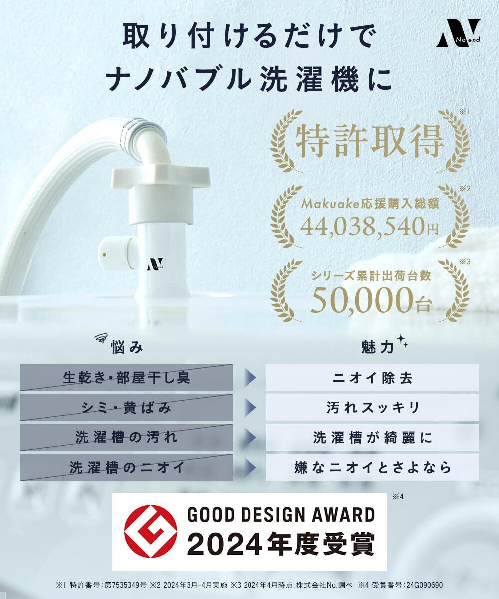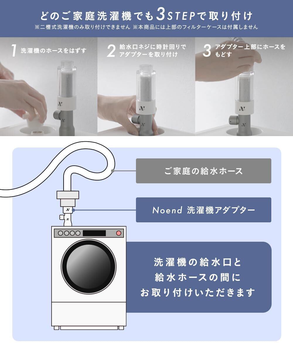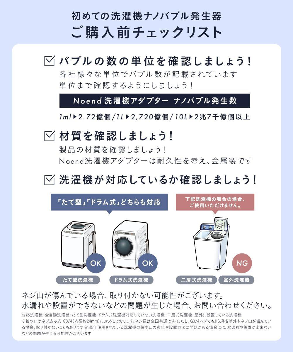 Noend オーガニックファインバブル洗濯機アダプター ナノバブル発生器 【汚れ除去|ニオイ除去|洗濯槽洗浄】【国内ブランド|取得|日本初】【タテ型洗濯機/ドラム式洗濯機対応|工具不要】 グッドデザイン賞2024年度受賞 (アダプター単品/ホワイト)