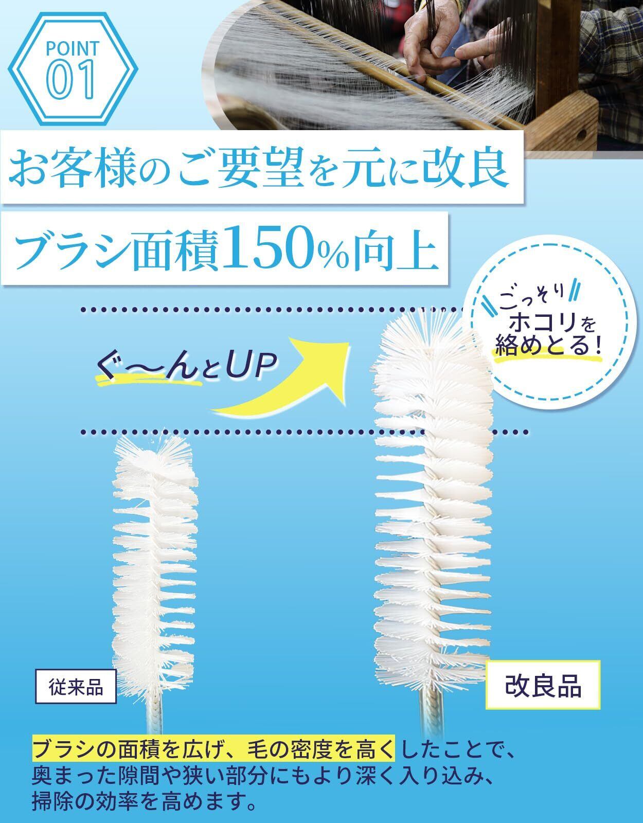 【高密度モデル】普段の手の届かない『乾燥経路』のホコリやペットの毛、ゴミが溜まっていると、乾燥時間が長くなったり、無駄な電力消費にもつながります。 ブラシはステンレスと上質なナイロン素材が使用され、従来のブラシ面積を150%向上し、より効果的にお掃除を行うことができるよう改良しています。