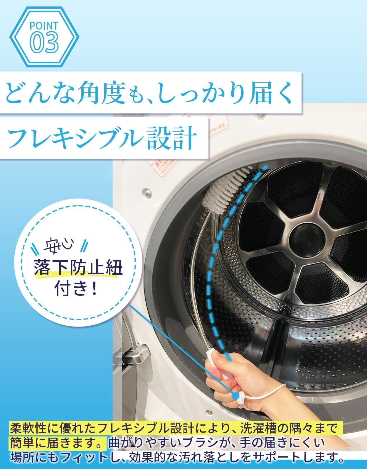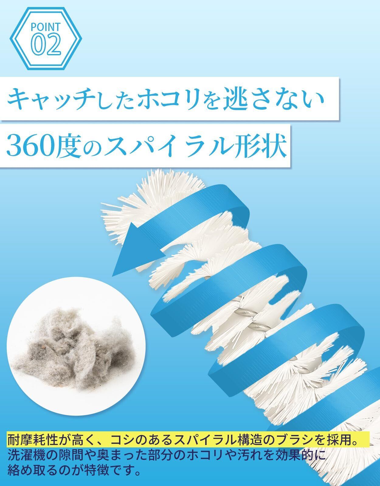 【多用途にも使える】一本だけで、乾燥経路からドアパッキン、糸くずフィルター内、乾燥フィルターや排水パイプまで掃除できます。洗濯機に限らず、手の届かない細かな場所で使えるのがとても便利です。 洗濯機周りの清掃にご利用いただき、清潔な洗濯環境を保つために欠かせない商品です。