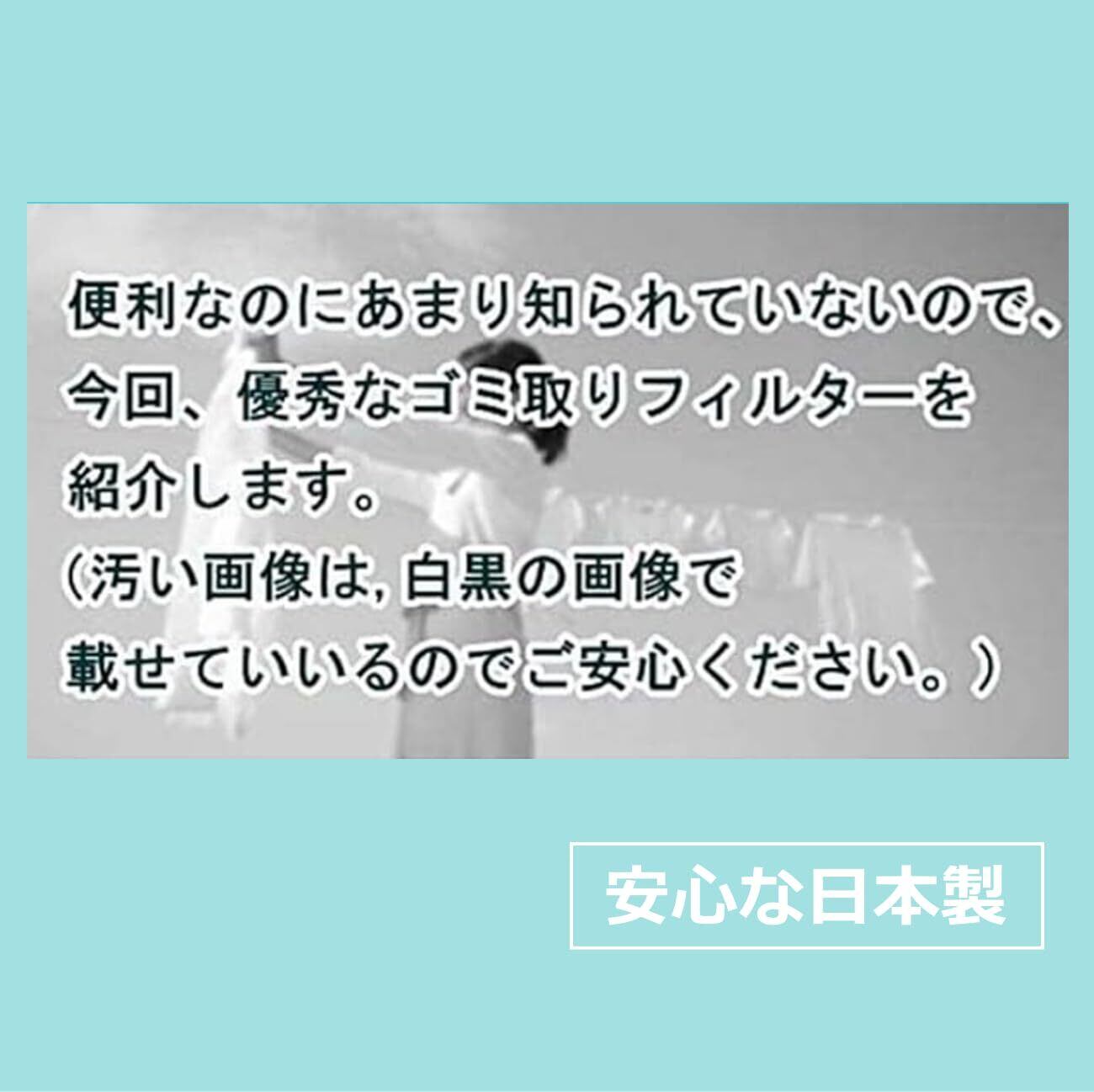 ゴミ取りフィルターは頻繁に洗わないで放っておくと、真っ黒、ベトベト、 ネットリになって、見るのも気持ちの悪い状態に! ゴミ・毛取りフィルターをセットするだけで、ゴミ・糸くずをしっかりとキャッチして、後はポイッと捨てるだけ!「 洗濯機内をいつも清潔にしたい」「ベトベトを洗うのは苦手だ」という方にオススメです。