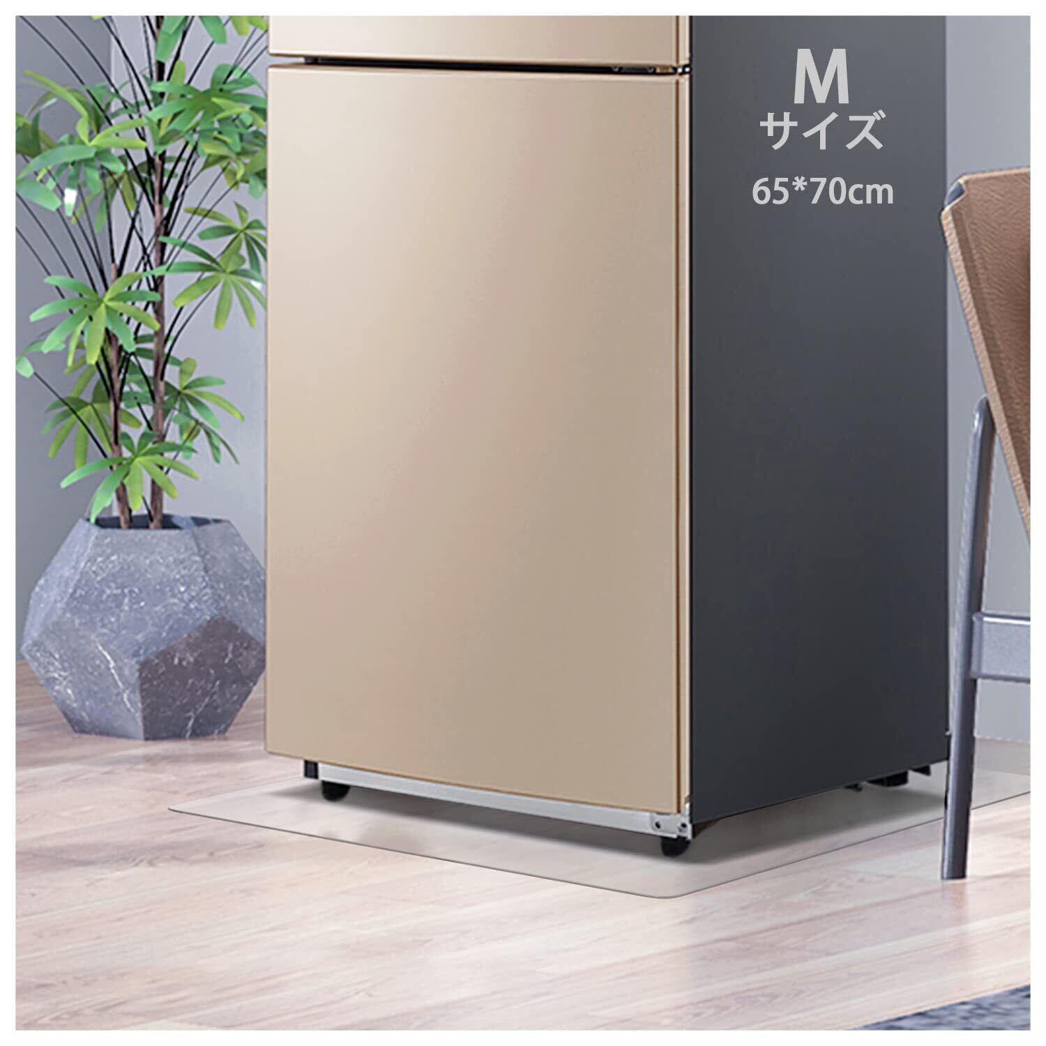 冷蔵庫マット 無色 透明 65×70cm 厚さ2mm PVC キズ防止 凹み防止 床保護シート 滑り止め 床暖房対応 下敷き Mサイズ 500Lクラス適用 (M-65*70CM)
