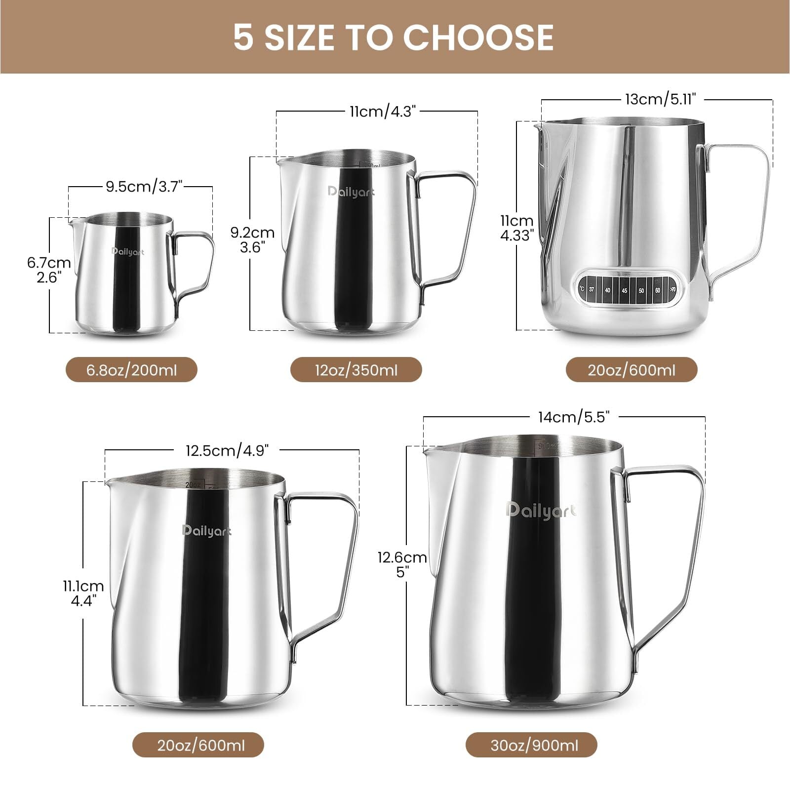 プロ品質: Dailyart ミルク泡立てピッチャーは、クロム仕上げの #304 ステンレススチール製で、防錆、汚れ防止、耐衝撃性、耐熱性があり、日常の使用にのみからず、カフェ、喫茶店、レストラン、バーなど場所に大活躍です。