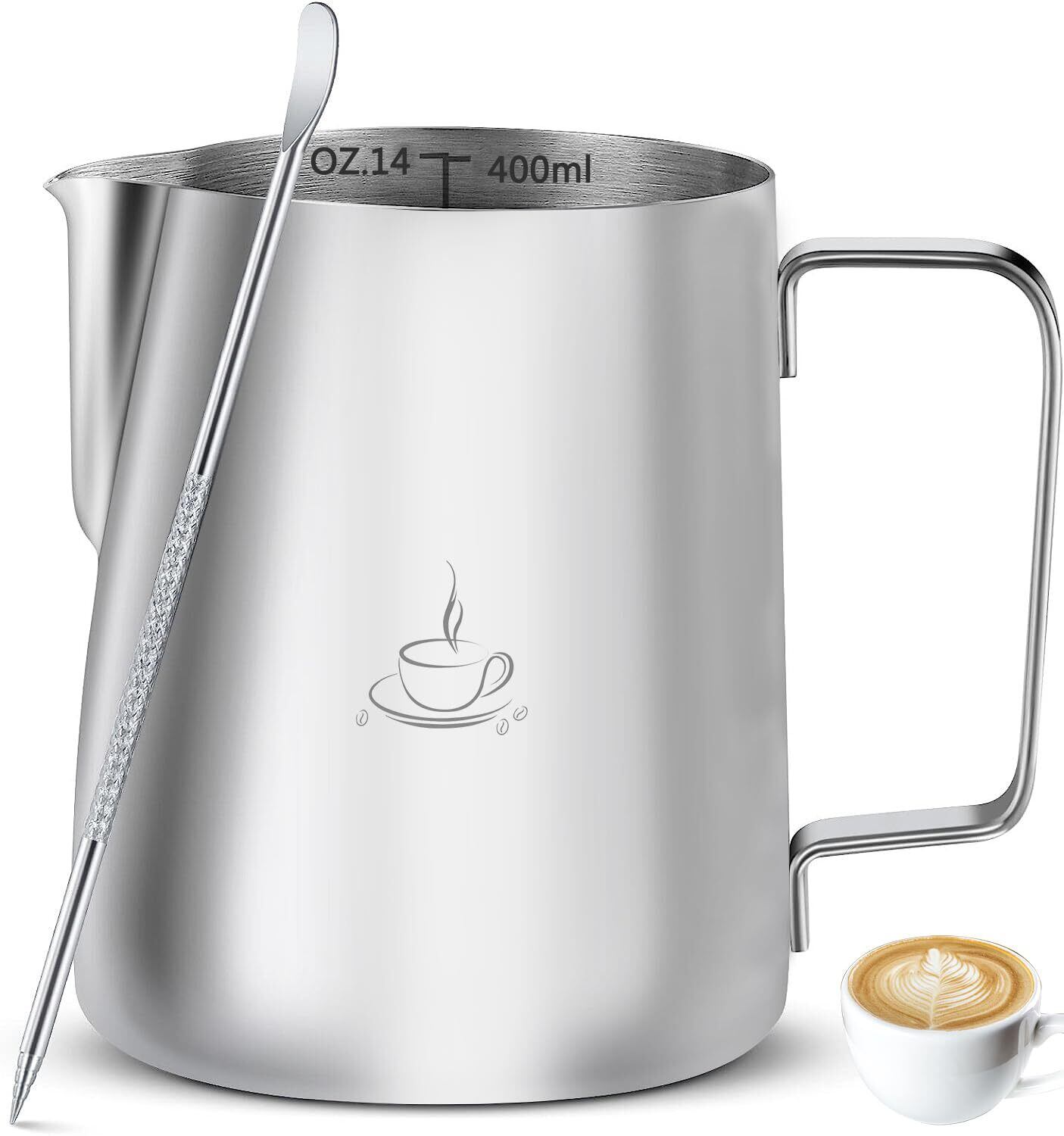 稲植屋 ステンレス製 ミルクジャグ ミルク ピッチャー ステンレススチール ラテアート ピッチャー ラテ ミルク 400ml (14oz)1