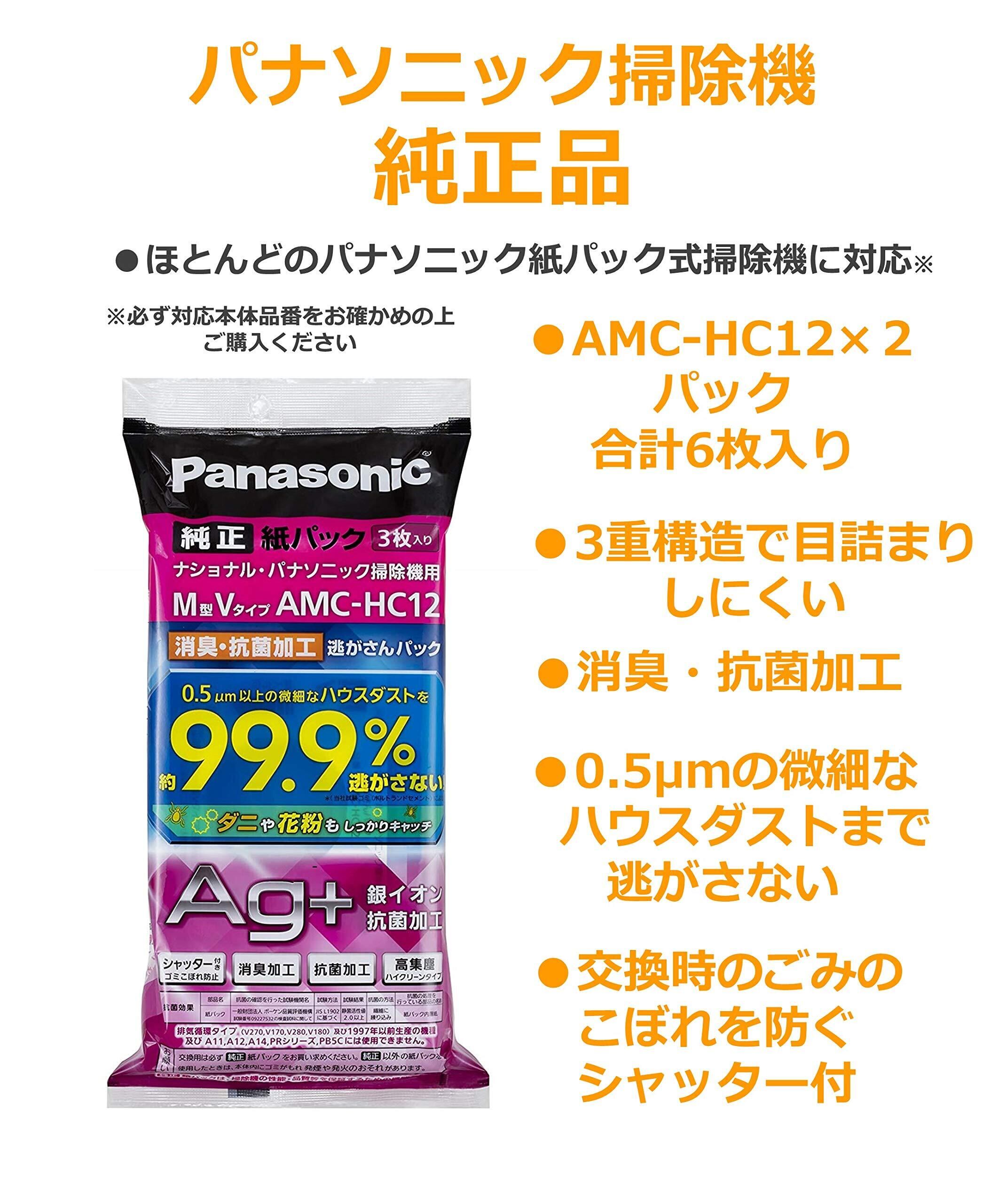 【まとめ買いセット】パナソニック 交換用逃がさんパック 消臭・抗菌加工 M型Vタイプ 6枚入り AMC-HAC12 フラストレーションフリーパッケージ(FFP)