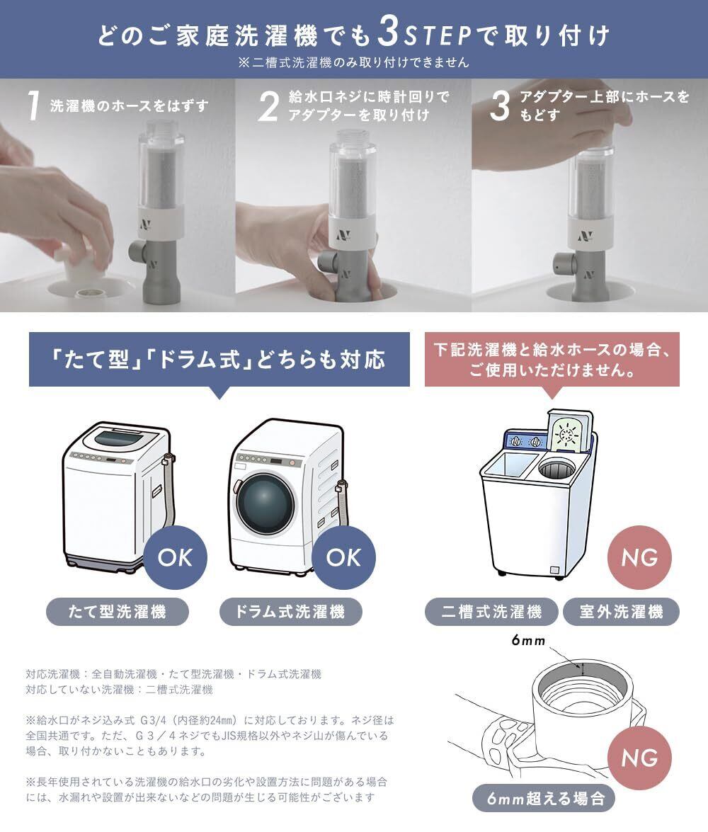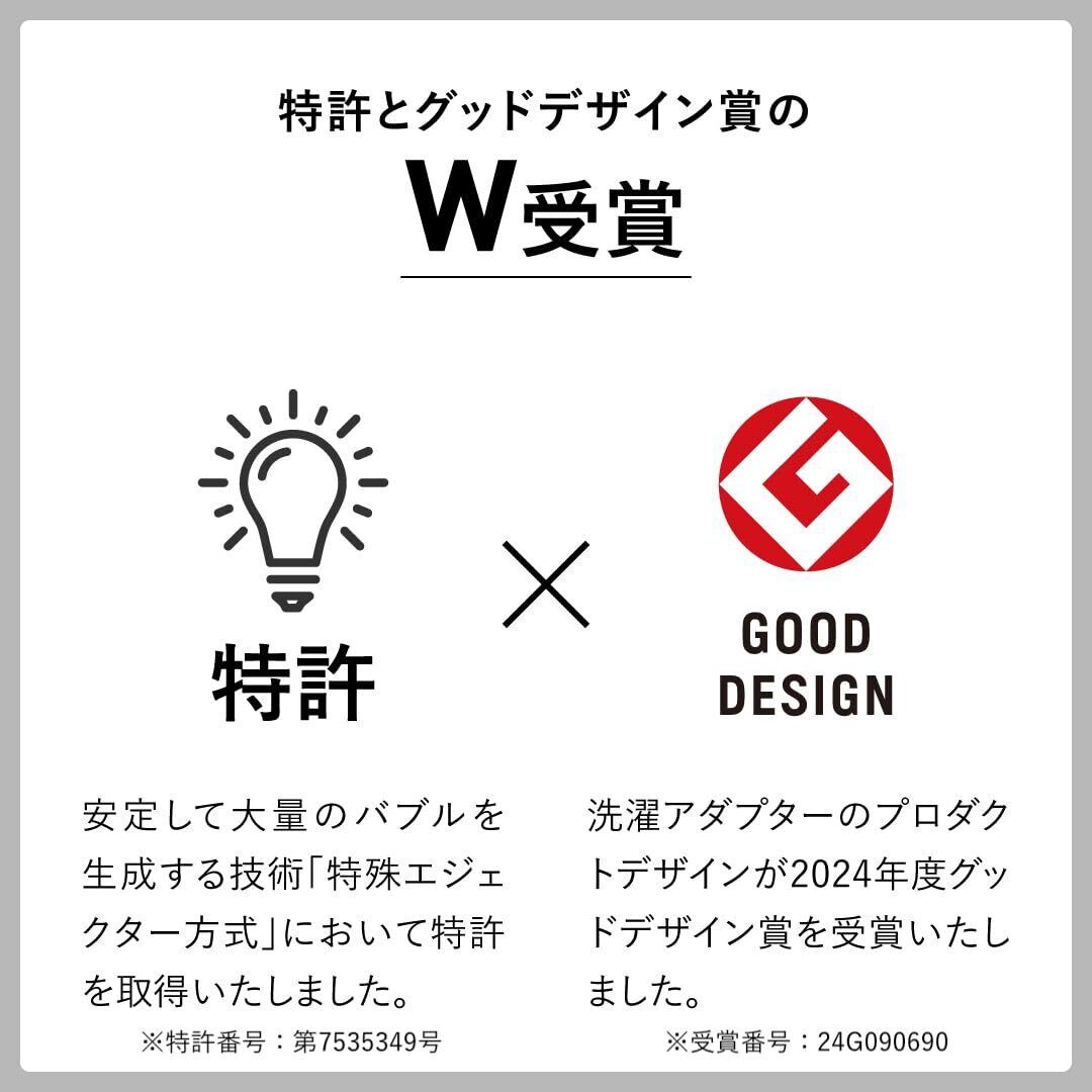 Noend オーガニックファインバブル洗濯機アダプター ナノバブル発生器 【汚れ除去|洗濯槽洗浄】 【AG+抗菌|ニオイ除去】 【99% 塩素除去|色落ち防止】 【国内ブランド|取得|日本初】 【タテ型洗濯機/ドラム式洗濯機対応|工具不要】 グッドデザイン賞2024年度受賞 (活性炭フィルター1本付属) (アダプター&フィルターケースセット/ホワイト)