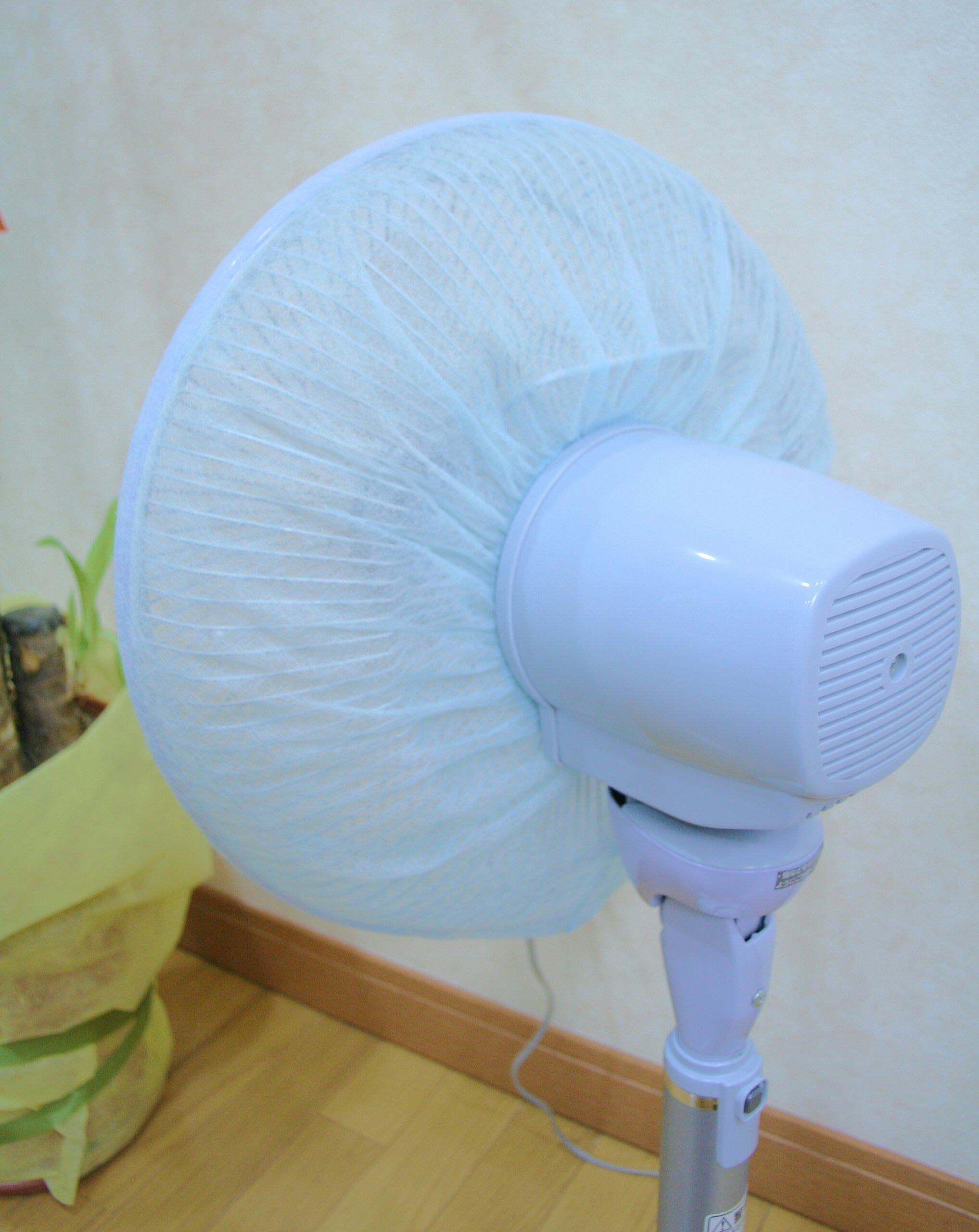 扇風機にかぶせるだけで、ホコリをキャッチ。ゴム付きで、装着簡単かぶせるだけ。