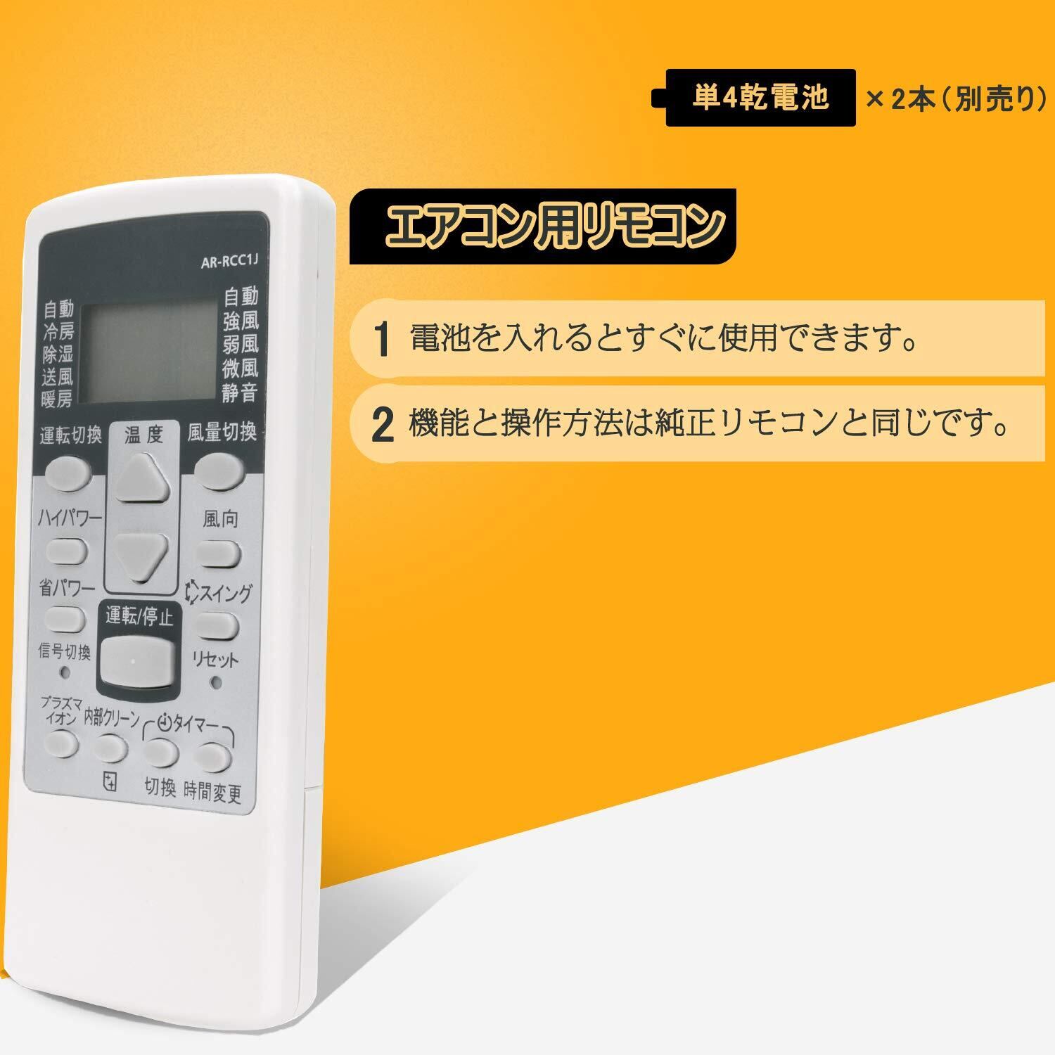 この製品の対応のリモコンは、AR-RCC1Jのみです。ご確認の上、ご注文ください。※出品しているリモコンは代用リモコンですが、純正リモコンのボタン機能はすべて使用できます。