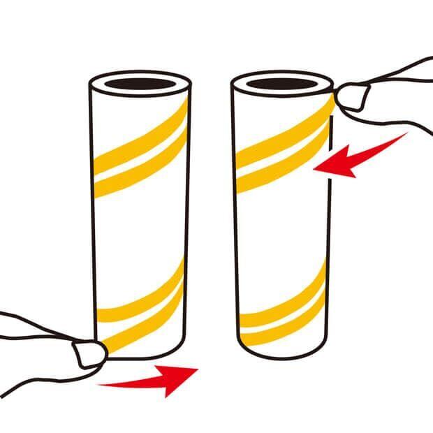 【どちらからでもめくれます 】粘着テープはうずまきカットのどちらからでもスムーズにめくれます。