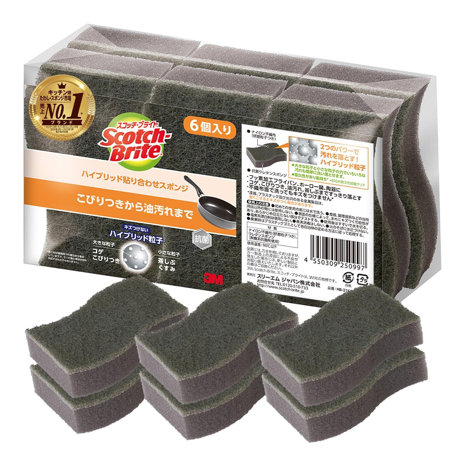 3M スコッチブライト ハイブリッド 貼り合わせ スポンジ 食器洗い モノトーン キッチンスポンジ 食器用スポンジ キズつけない グレー 6個