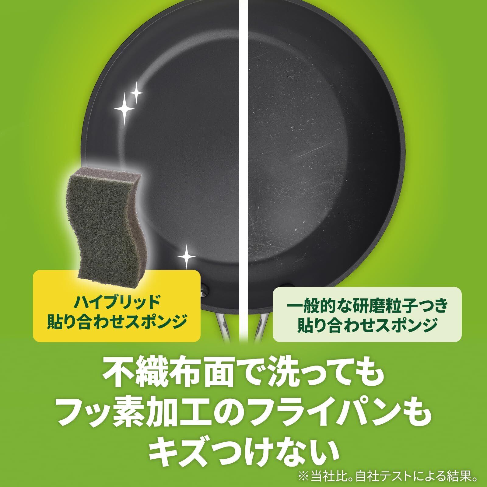 【パワフルなのに、キズつけない】フッ素加工のフライパン、ホーロー、ココット鍋などの調理器具にキズをつけないスポンジ。軽い力で汚れを落とせるので、お皿や茶碗にも安心してお使いいただけます。