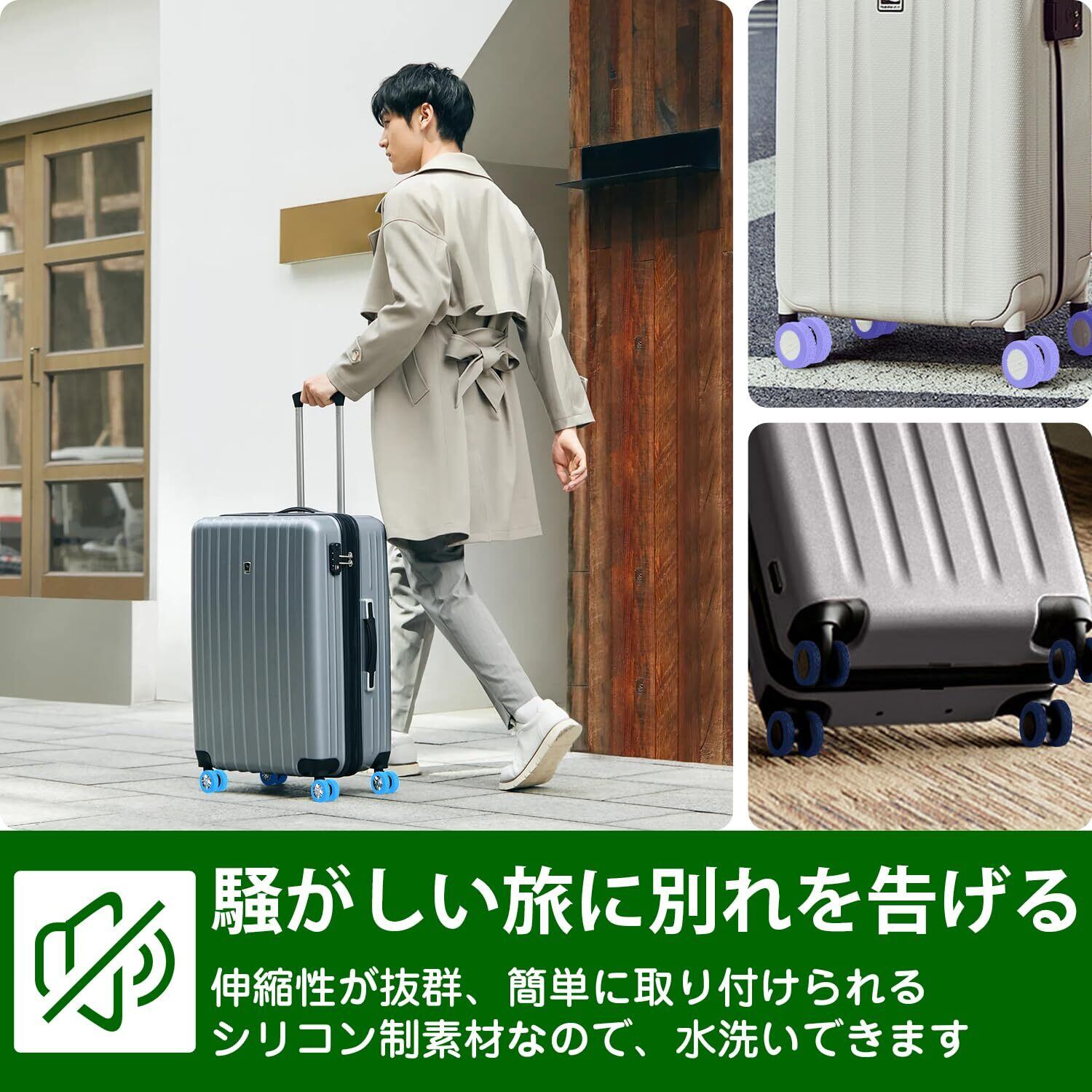 【落下防止設計】トランクホイールの小包の面積を拡大したデザインを採用しており、キャスターカバーの落下を効果的に防止することができます。また、耐摩耗性、耐久性のある材料で作られており、日常の使用中の摩擦と摩耗に耐えることができ、車輪の傷、破損を防ぐことができます。車輪のほこりや土、その他の汚れがスーツケースに接触するのを防ぐこともできます