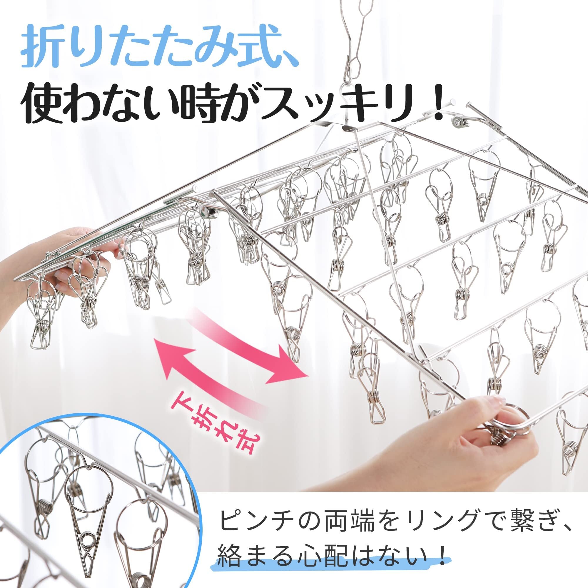 「耐久性と使いやすさのイイトコ取り」ピンチはオールステンレスで、シンプルながら洗練された美しさ、錆びに強く、強度も抜群、汚れも落ちやすく、手間もかからず楽々です。※重い洗濯物を挟む場合は複数のピンチを併用してください。