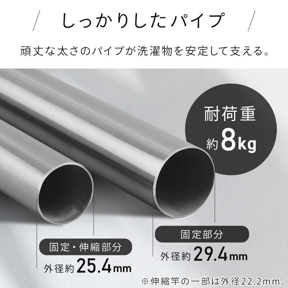 耐荷重約8kg。しっかりした太さのパイプで洗濯物をしっかり支えます。