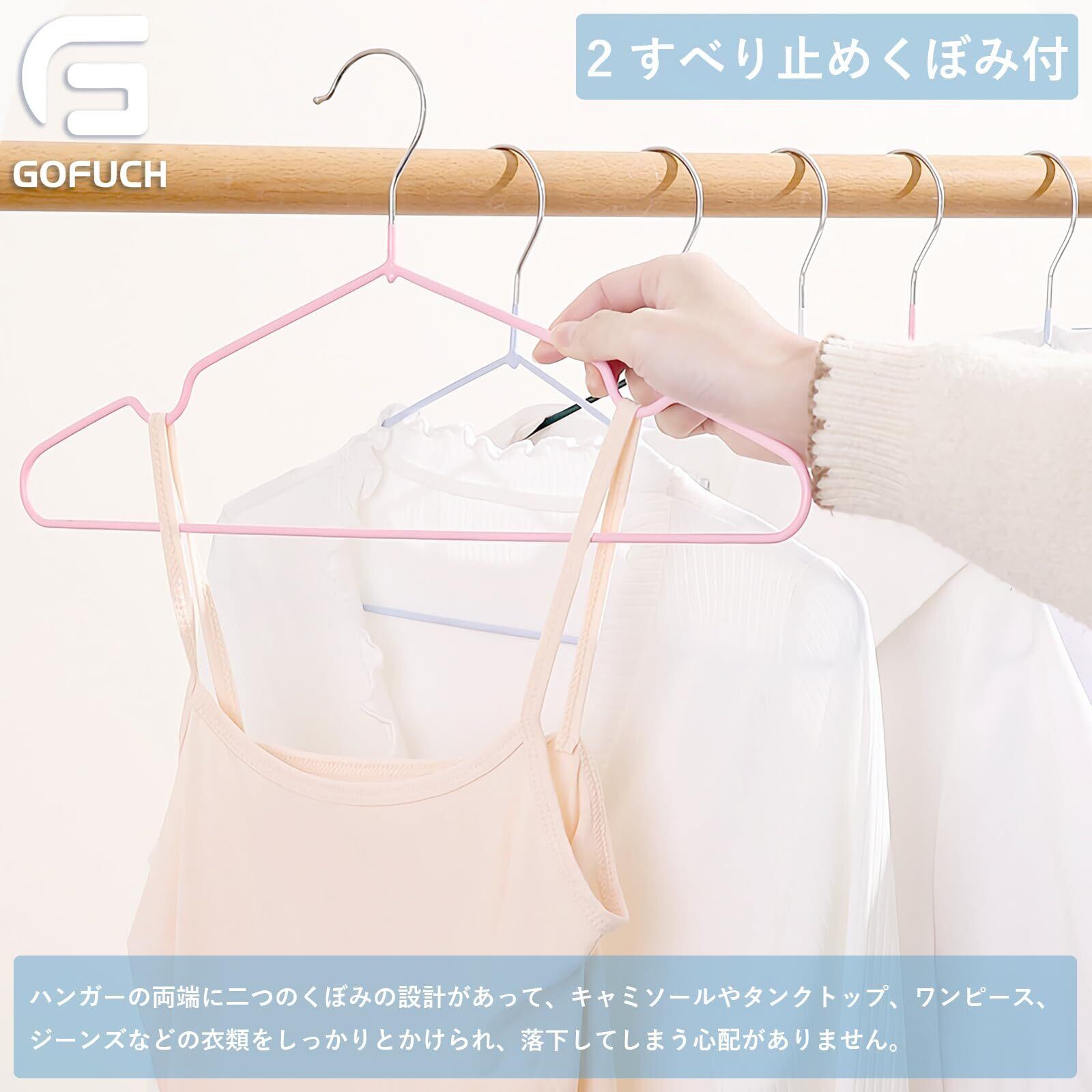 【すべらないハンガー】ハンガーの本体は、高品質のPVC材料とスチールを採用しています。PVC材料が滑り止めの効果がよくて、どんな衣類を掛けても落ちる心配がありません。コート、洋服、キャミソール、スカート、タオル、またズボンにも対応できます。安心に使えるハンガーです。