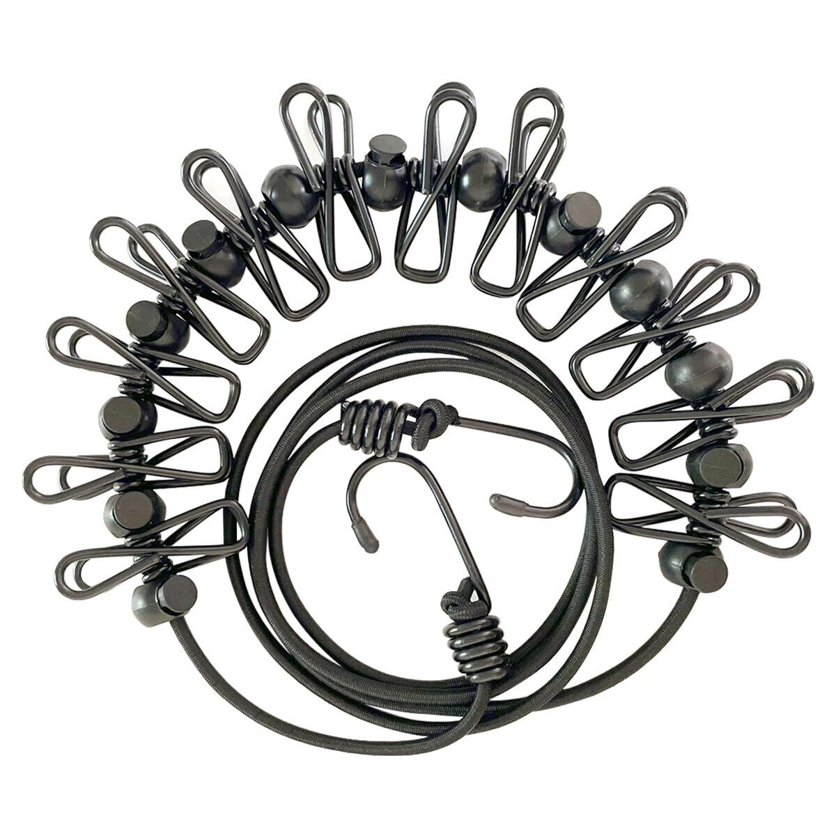 Solo Sapiens 洗濯ロープ 旅行用 洗濯物干し 洗濯紐 物干しロープ 大型フックとゴム製ロープで旅行の洗濯物干しに最適 玉止めストッパー 強力洗濯ハサミ 室内物干し 部屋干し 洗濯 旅行 出張 海外旅行 便利グッズ 1.8m (ブラック)