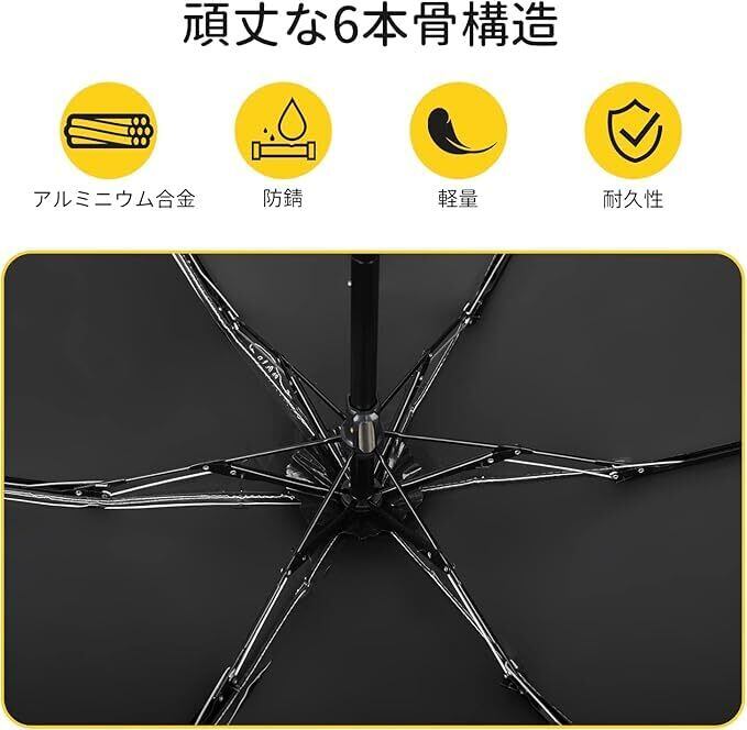 【頑丈な6本骨&耐風撥水】センターポールと6本の傘骨は頑丈なアルミニウム合金製で、超軽量の折畳み傘でありながら、耐久性も向上され、風に強くて折れにくい。梅雨対策や、荒れた天気にも難なく対応できる晴雨兼用の折りたたみ傘です。