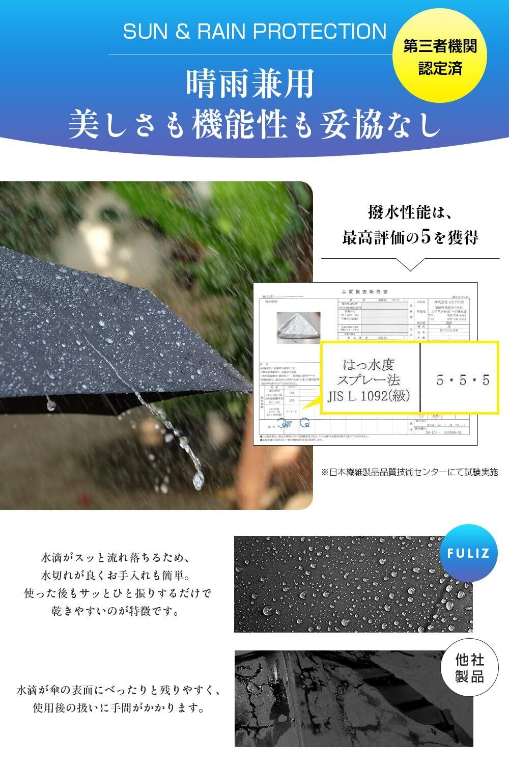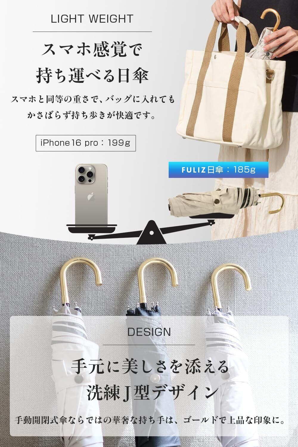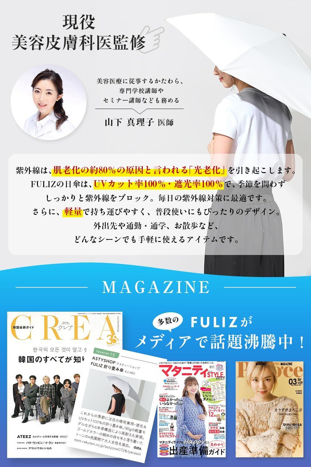 FULIZ 折りたたみ傘 超軽量 日傘 uvカット率 100% 遮光 遮熱 レディース コンパクト 晴雨兼用 折り畳み傘 完全遮光 J型ハンドル 【女性誌掲載】