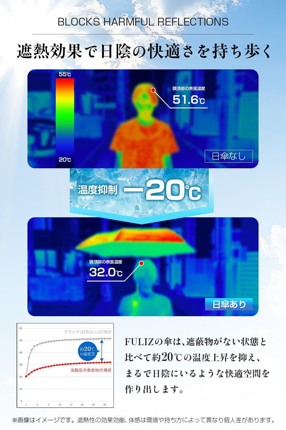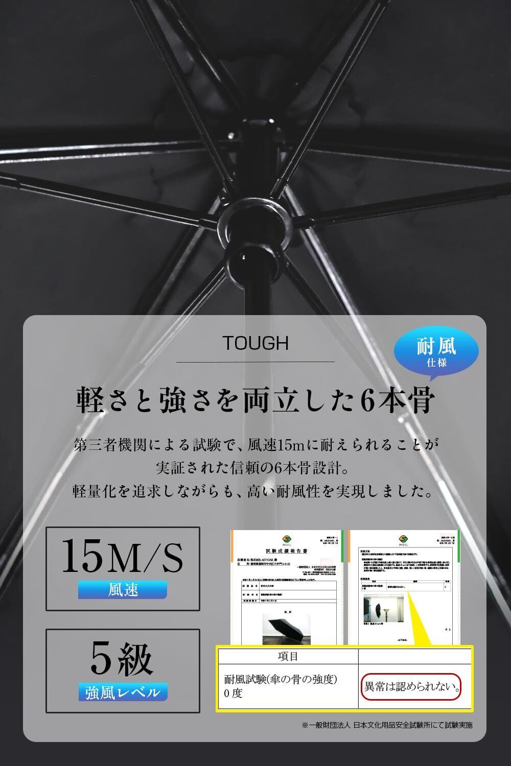 【完全遮光の実力】これまで不可能とされてきた“完全遮光”を実現した日傘です。第三者機関のテストでUVカット率100%・遮光率100%の効果が証明されました。特殊な合成ゴムコーティングを施し、強い日差しや紫外線を徹底的にブロック。日焼け対策はもちろん、まぶしさを抑え、快適な日陰空間を作り出します。