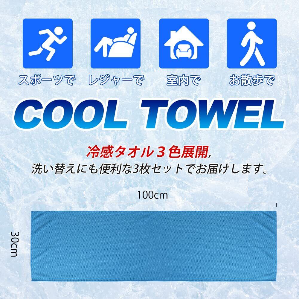 LINECY 日本製 冷感タオル クールタオル 3枚セット UVカット大判30X100cm ひんやりタオル 超吸水 首ひんやりグッズ 冷感繊維使用 冷却タオル 超軽量 吸汗速乾 冷感持続 熱中症対策 スポーツタオル