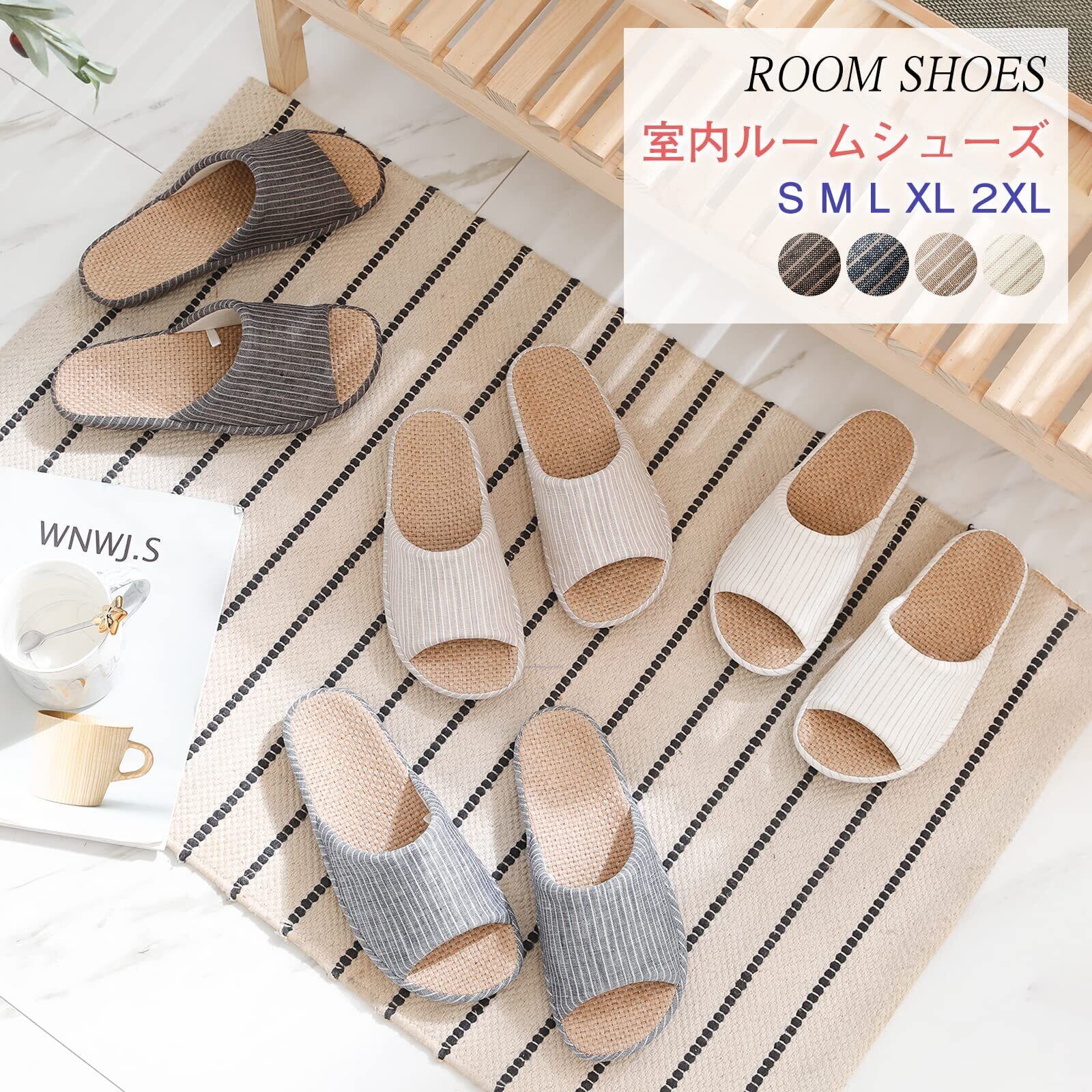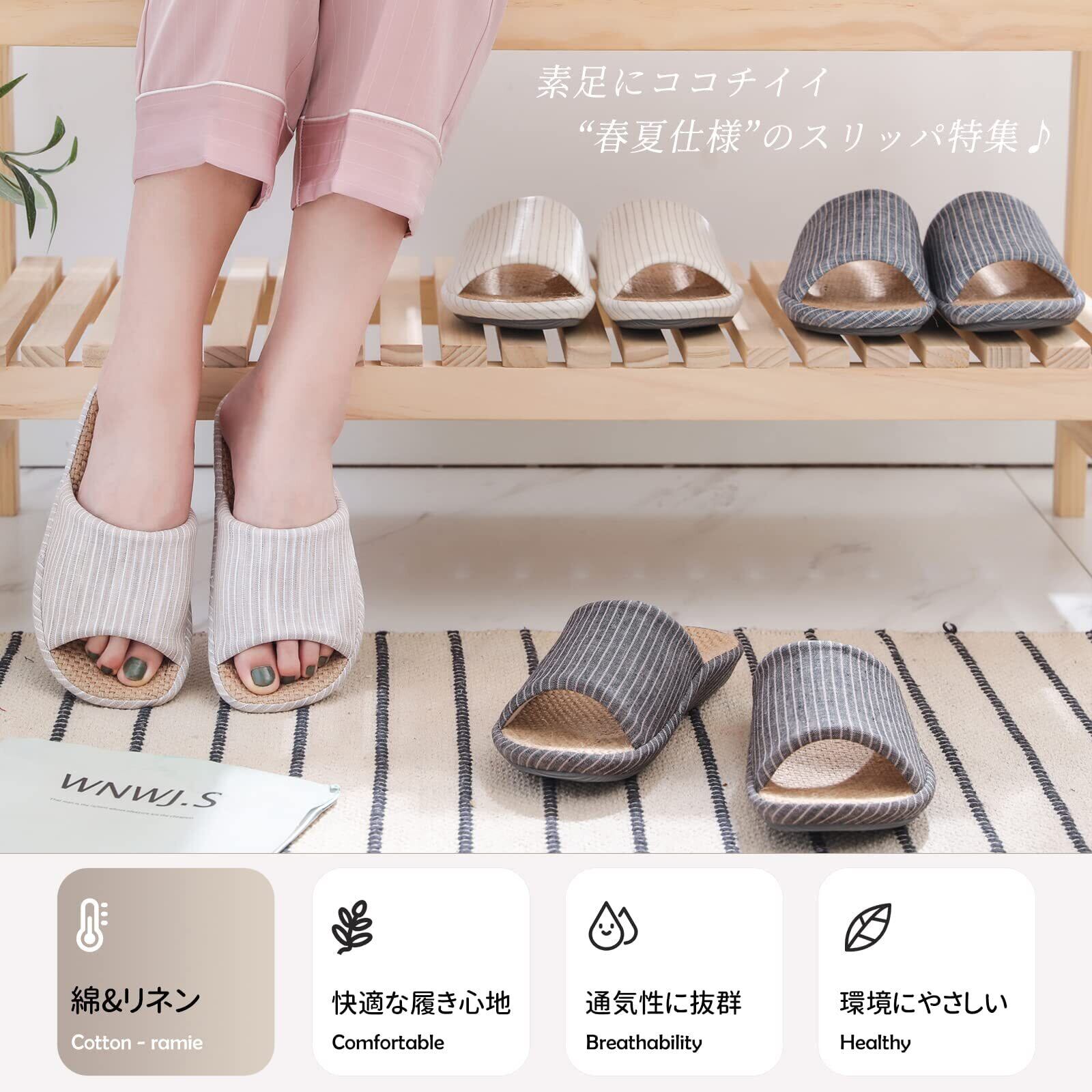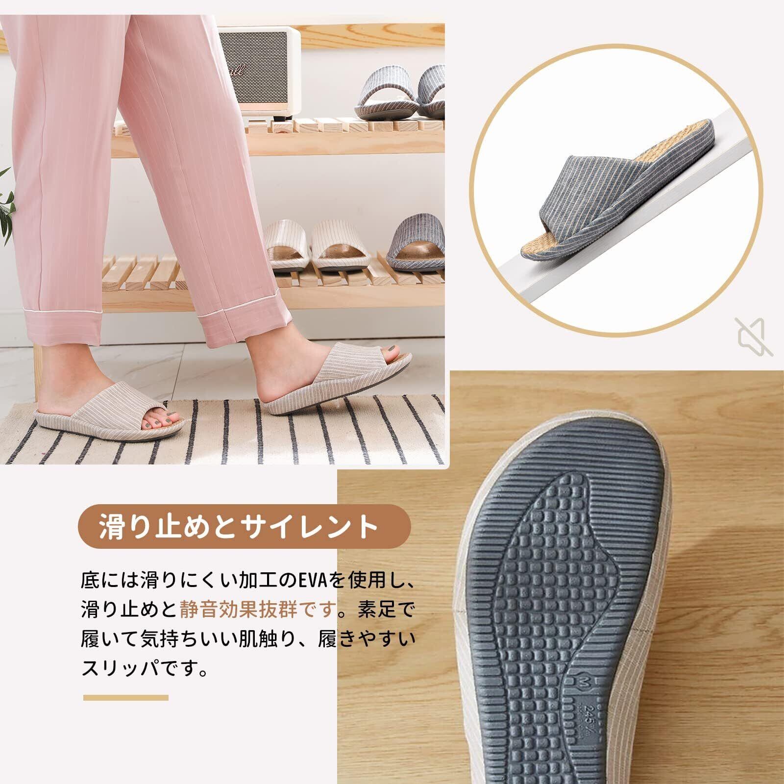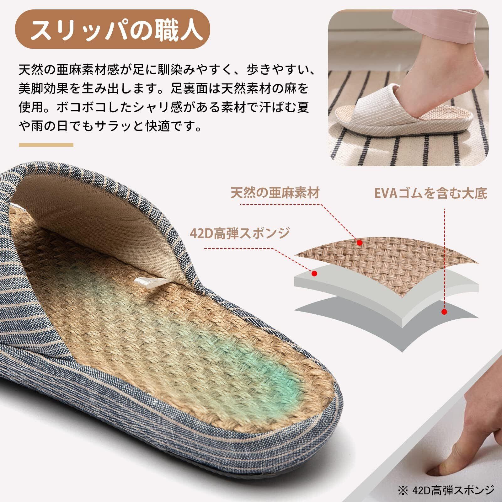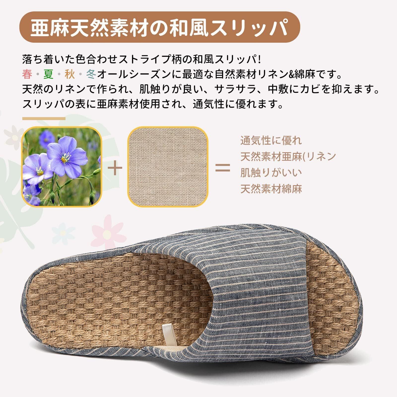 [SOARHOPE] ルームシューズ 亜麻 スリッパ メンズ レディース 室内履き 和風 無地 春夏用 来客用 部屋用 軽量 オシャレ 通気 シンプル 素足で履く 洗濯可
