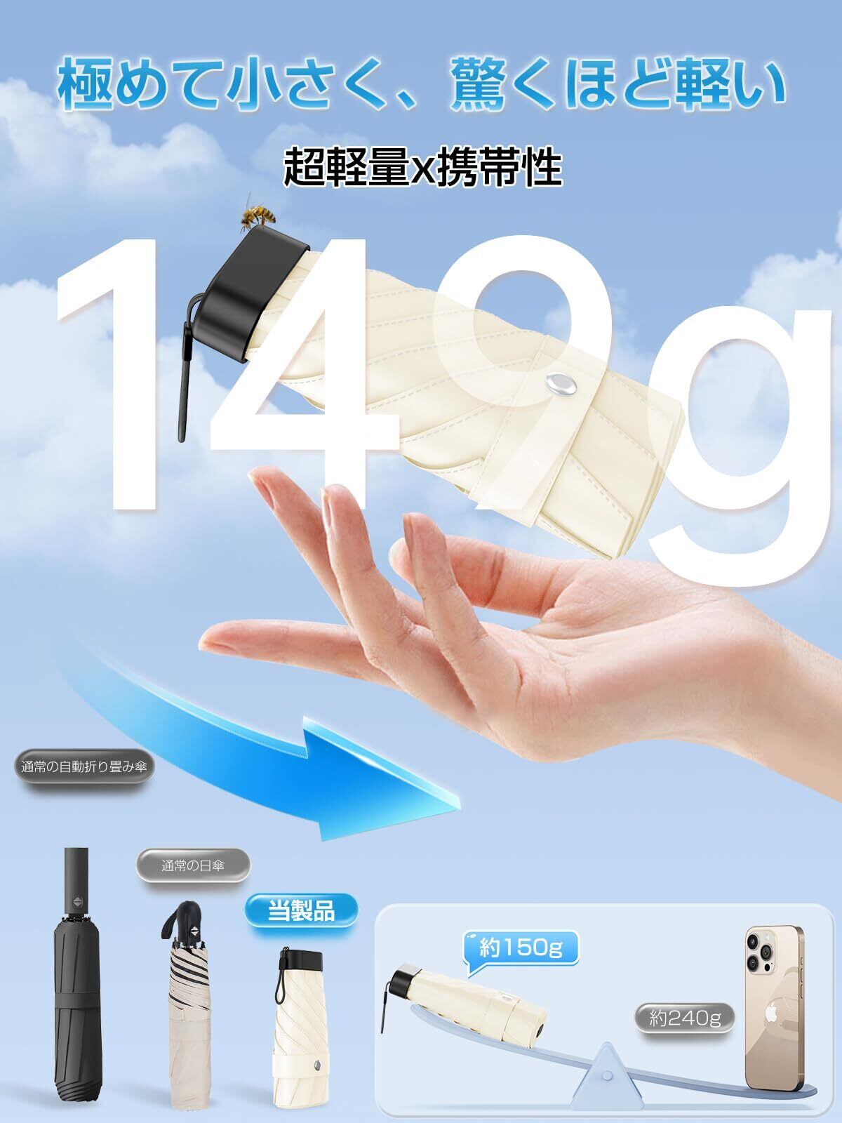 【149g 究極の軽量性 & 携帯性抜群】この軽量おりたたみ傘は、 軽量化技術を凝縮し、素材選択から構造設計まで細部にこだわり、極限まで軽く作られています。たった 149g の重量で、持ち上げるとほとんど存在感を感じないほどで、日常外出や旅行にも持ち運びが全く負担になりません。折り畳み式のデザインで、非常にコンパクトに収まります。小さなバッグやポケットにも簡単に入れられ、出先でも邪魔になりません。サイズは小さいけれど、機能は損なわれず、必要な時には素早く展開して使用できます。