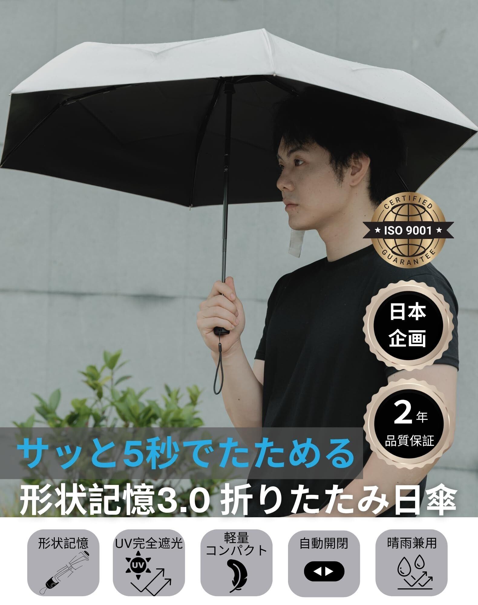 FANACAN 5秒でたためる 形状記憶折りたたみ日傘 超軽量 折り畳み日傘 uvカット 100 遮光 折り畳み 完全遮光 遮熱 ワンタッチ自動開閉 6本骨 UPF50+ 日焼け防止 熱中症対策 涼しい コンパクト 紫外線遮断 耐風撥水 晴雨兼用 携帯便利 丈夫 メンズ レディース 男女兼用 子供 母の日 父の日 プレゼント