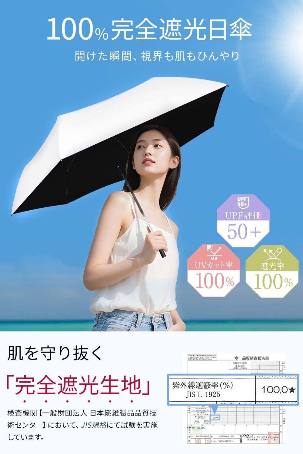 【JIS認証済・100%完全遮光の高性能日傘】 この日傘はJIS(日本工業規格)に認証された高品質モデルで、100%の遮光・遮断率を実現。真夏の強い日差しや紫外線を徹底的にカットし、肌トラブルや日焼けから守ります。美白ケアやUV対策を重視する方に最適な折りたたみ 日傘で、外出時の必需品としておすすめの日傘です