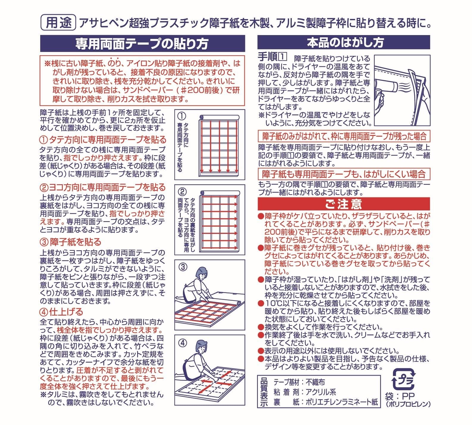 用途:超強プラスチック障子紙専用