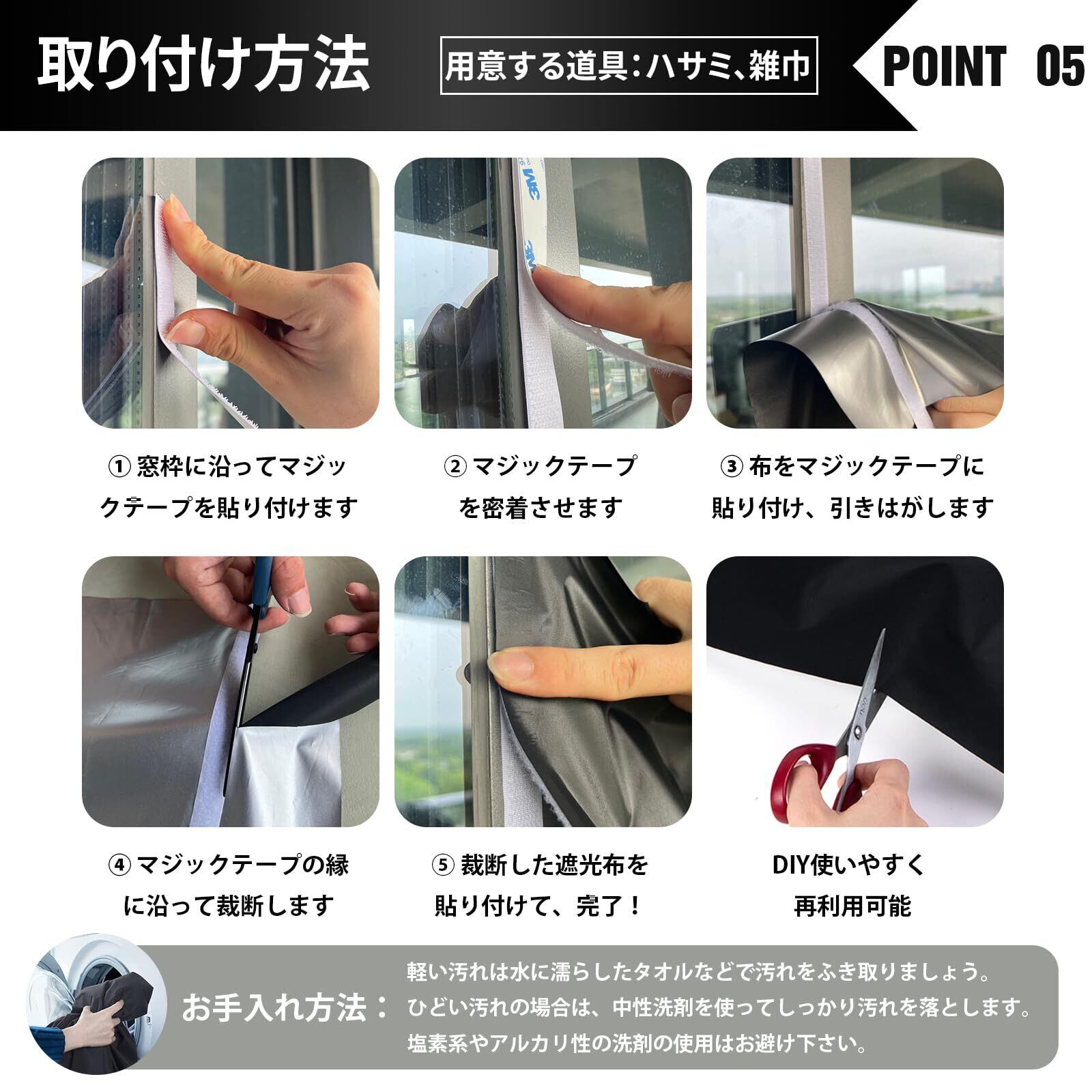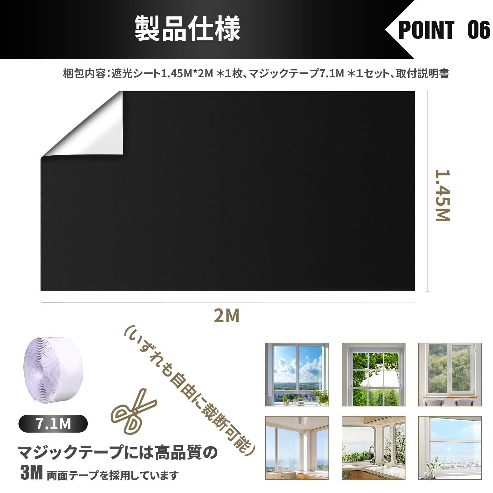 【様々なシーンで大活躍】防水効果もあるため、自宅の窓やバスルームのドアなど、テープが貼り付けられるところであればお好きにご使用していただけます。フリーカット可能だから、どんなサイズにも合わせやすいです。製品サイズは1.45*2 M、7.1 Mマジックシール付き。