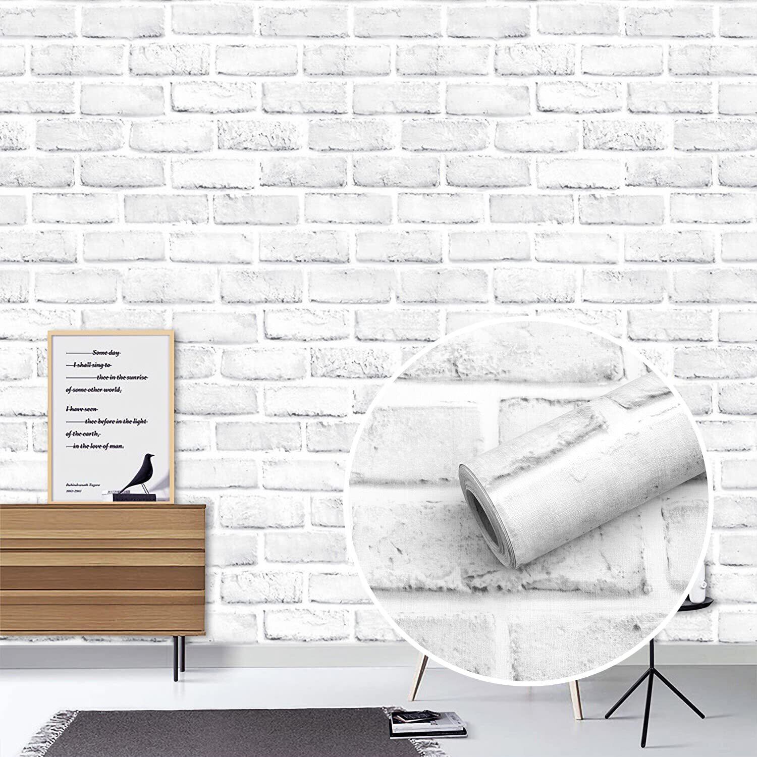 壁紙シール リメイクシート レンガ 10m 透けない 剥がせる 北欧 壁紙 おしゃれ 壁に貼って剥がせる キッチン トレイ 賃貸 防水 シート diy ウォールステッカー (ライトグレーレンガ44X1000cm)