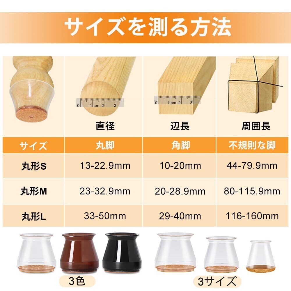 【中-サイズの範囲】丸脚直径(23-32.9mm)、角脚一辺(20-28.9mm)、不定形の場合、周囲長(80~115.9mm)に対応します。ご注文の際は、お手持ちの家具の脚のサイズをよくお測りください。